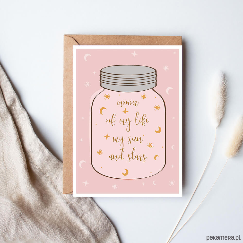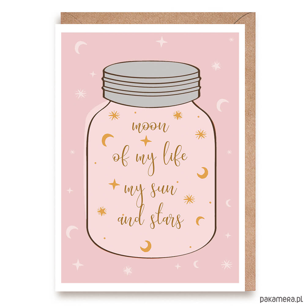 Kartka walentynkowa/miłosna - Moon of my life, my sun, my stars od Cardie to idealny dodatek do bukietu, prezentu albo… samodzielny gest, który mówi więcej niż tysiąc słów.
