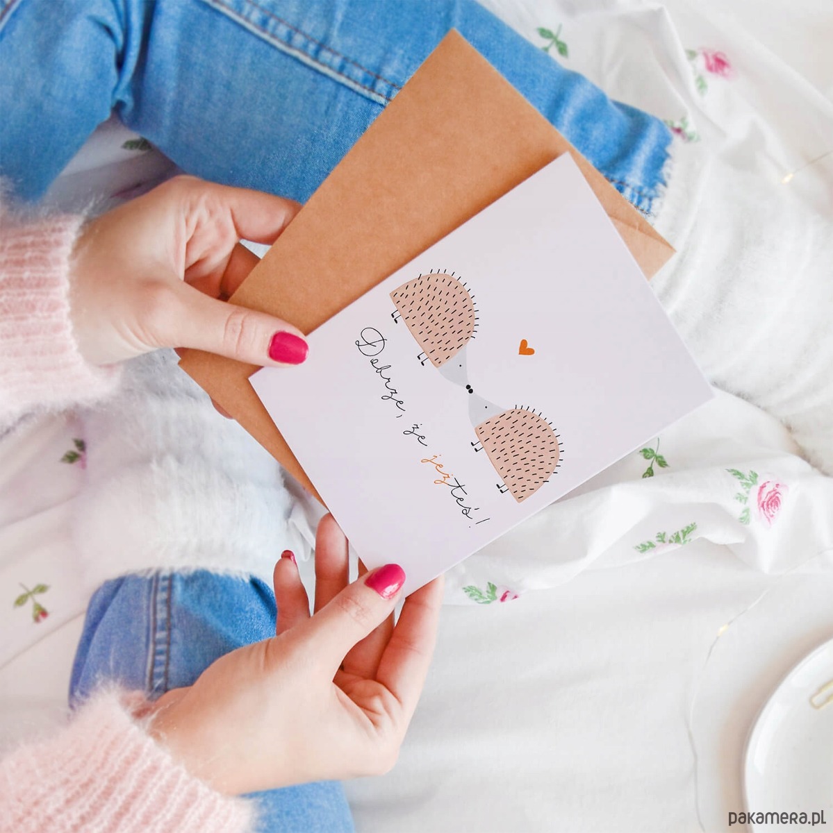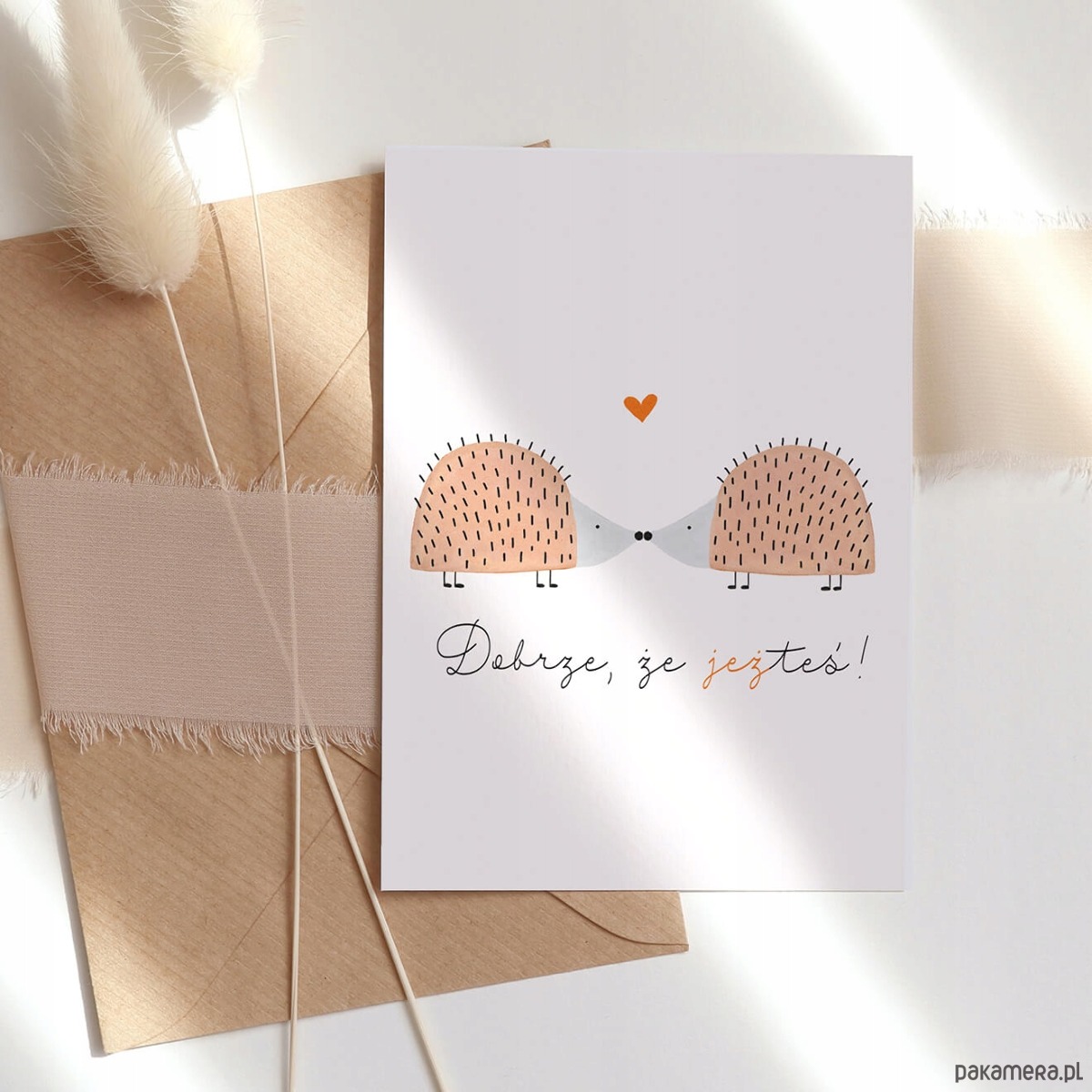 Kartka walentynkowa/miłosna z jeżykami - Dobrze, że JEŻteś od Cardie to idealny dodatek do bukietu, prezentu albo… samodzielny gest, który mówi więcej niż tysiąc słów.