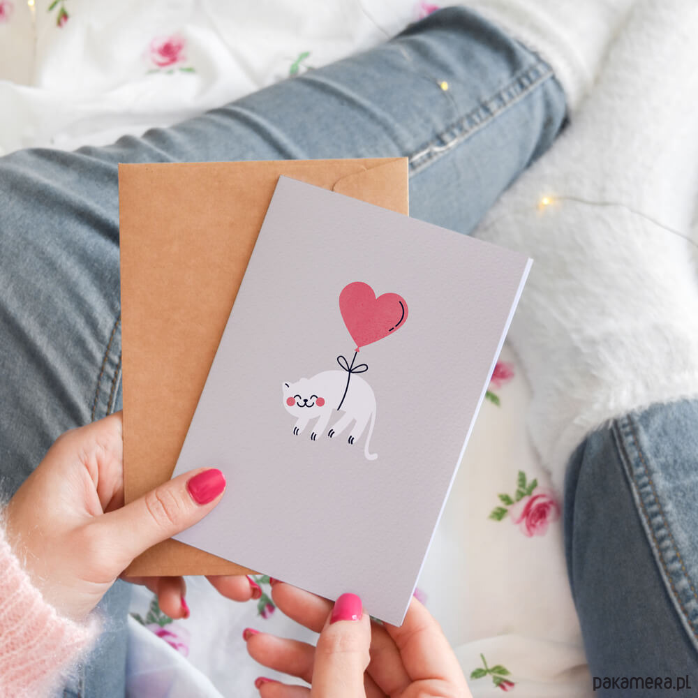 Kartka walentynkowa/miłosna z kotem od Cardie to idealny dodatek do bukietu, prezentu albo… samodzielny gest, który mówi więcej niż tysiąc słów.