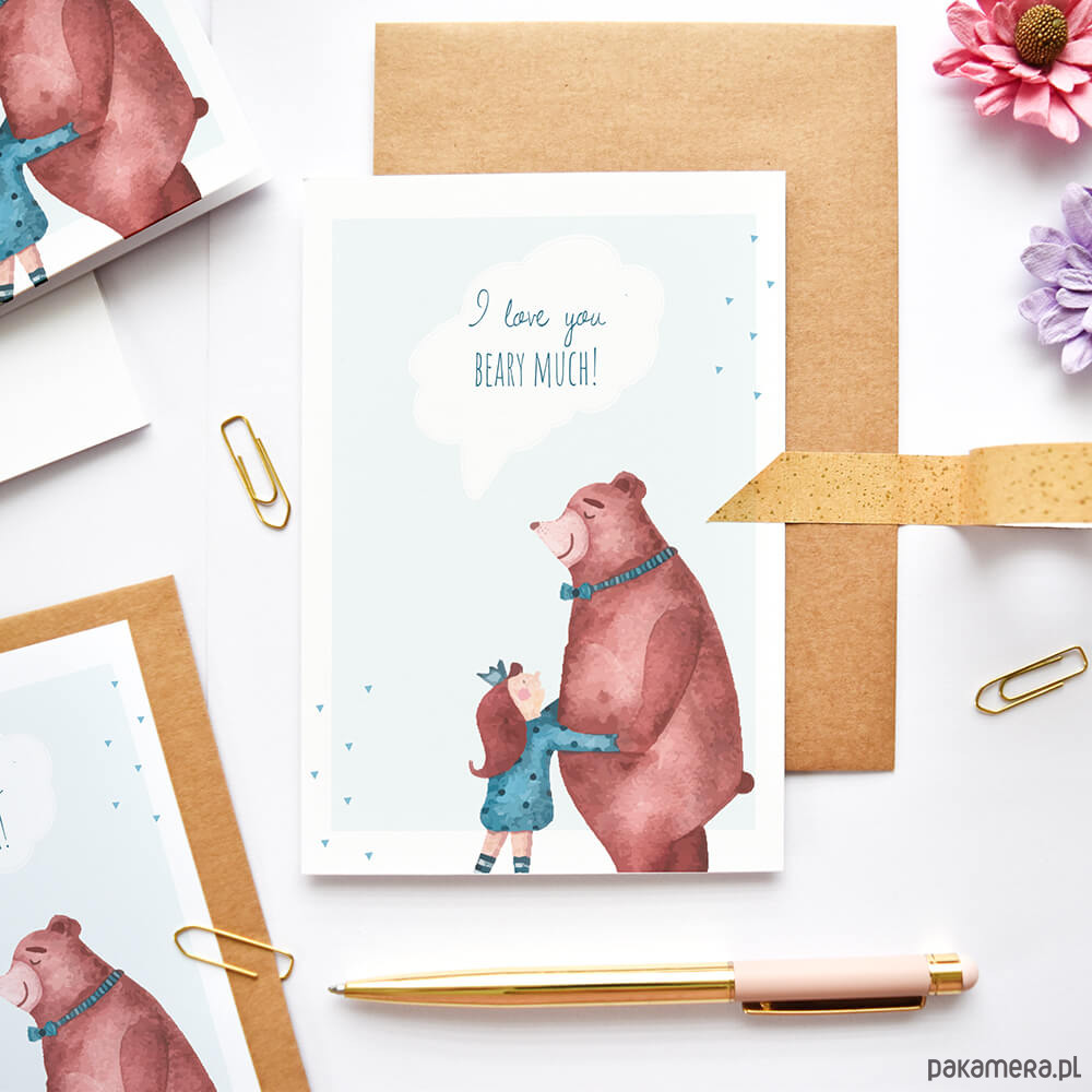 Kartka walentynkowa/miłosna z misiem - Love You Beary-Much od Cardie to idealny dodatek do bukietu, prezentu albo… samodzielny gest, który mówi więcej niż tysiąc słów.