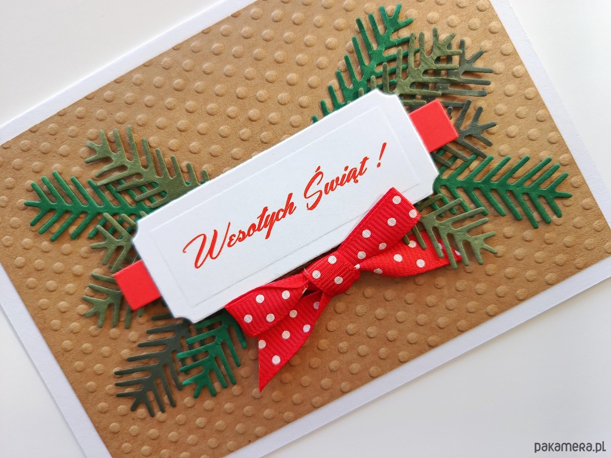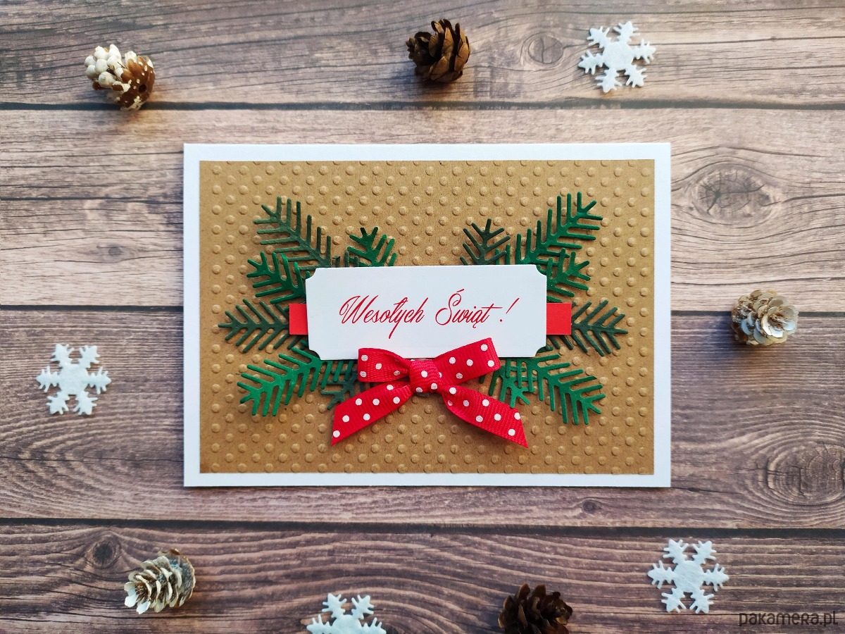 Kartka Wesołych Świąt z kokardką