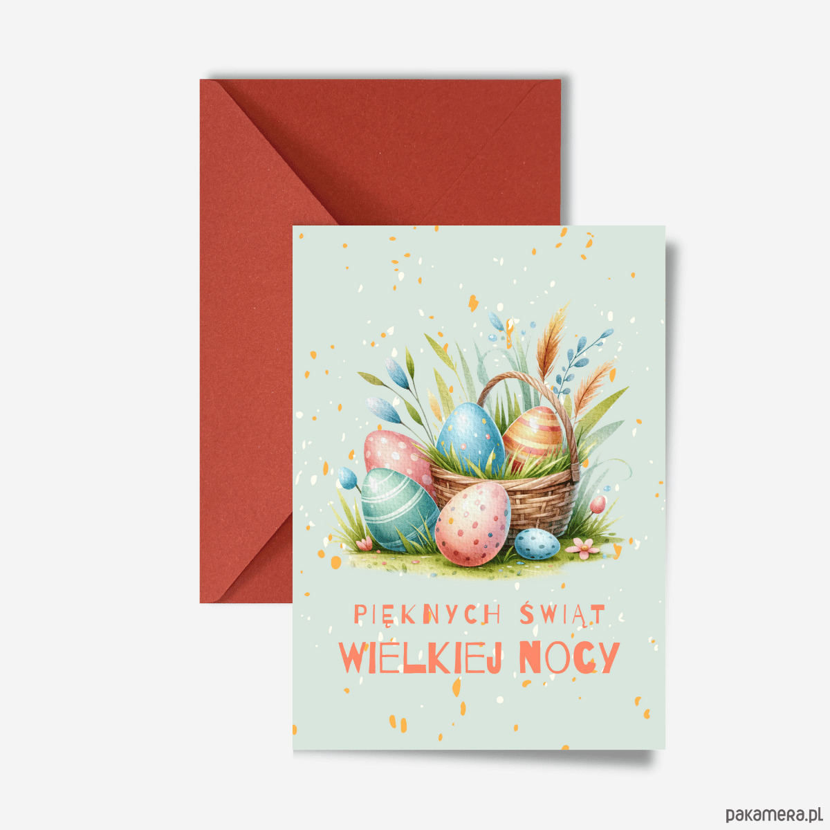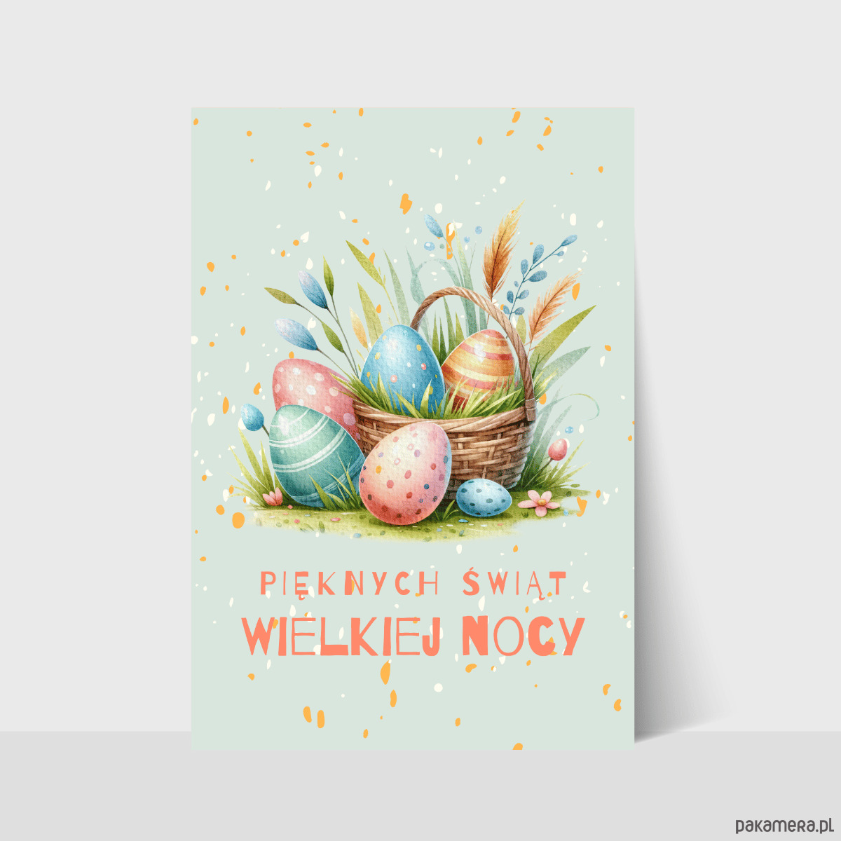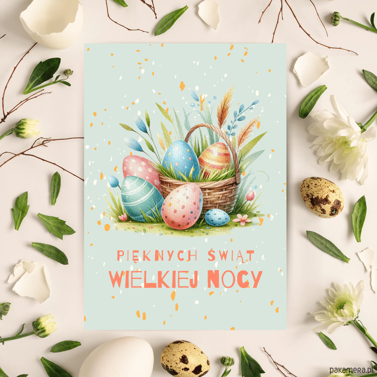 Kartka wielkanocna z motywem pisanek, uroczy design