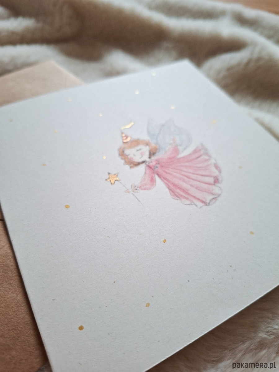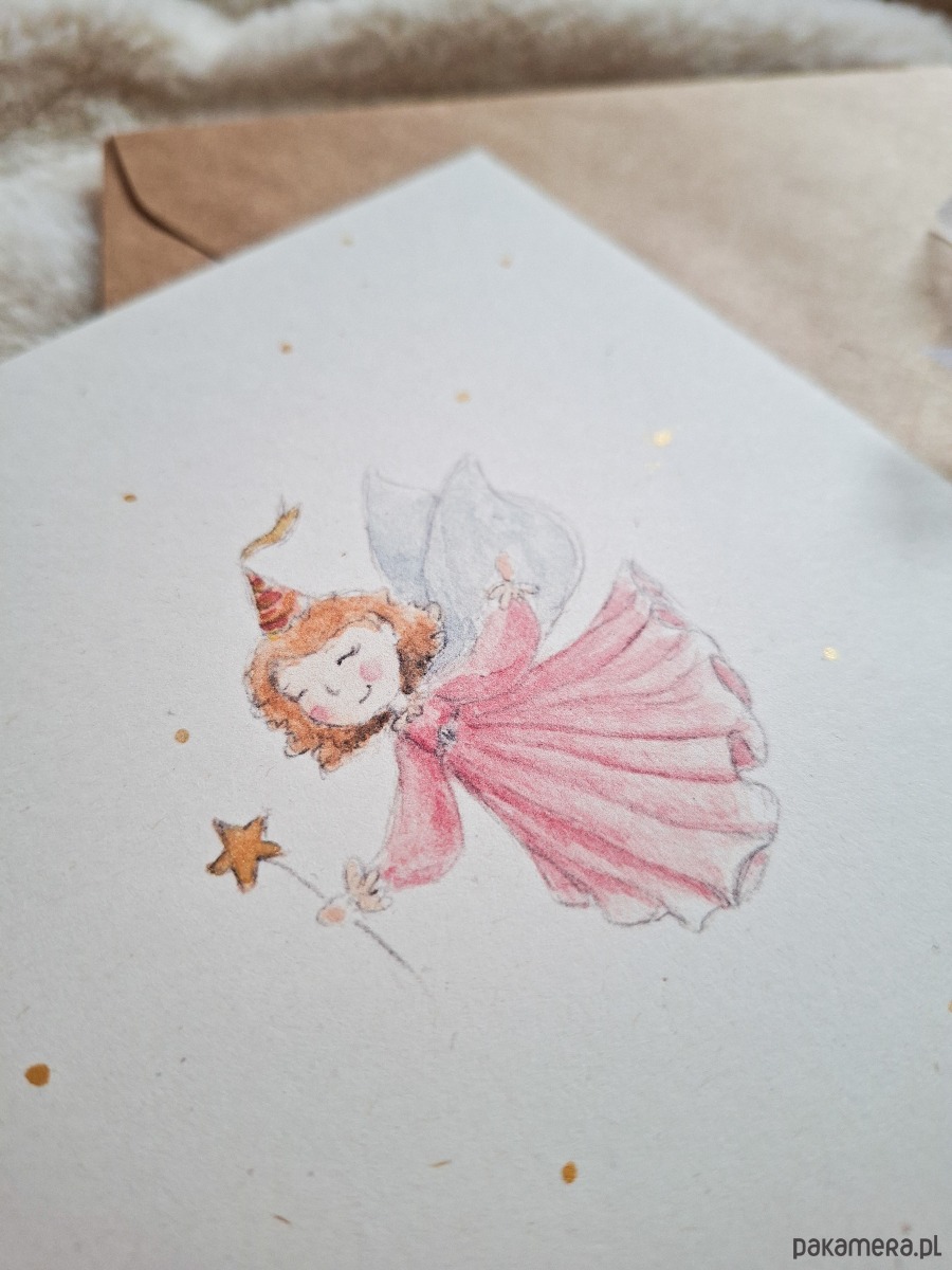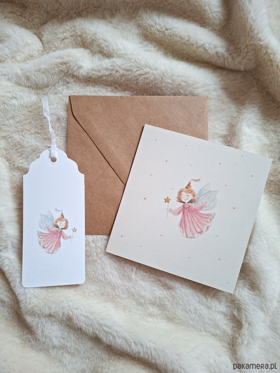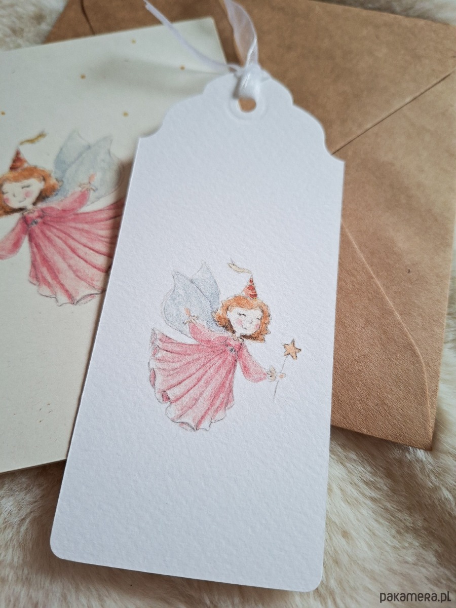 Kartka z autorską ilustracją wróżki w zestawie z zakładką do książki lub bilecikiem do prezentu ;)