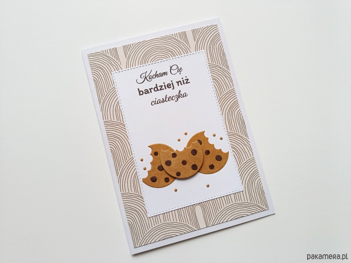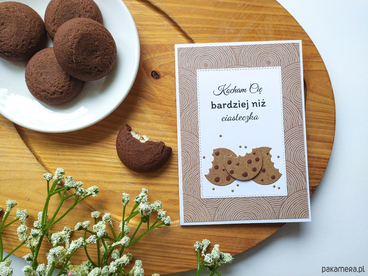 Ta urocza i zabawna kartka z i apetycznymi ciasteczkami i słodkim (dosłownie!) napisem „Kocham Cię bardziej niż ciasteczka” to idealny sposób, by wyznać uczucie z odrobiną humoru.