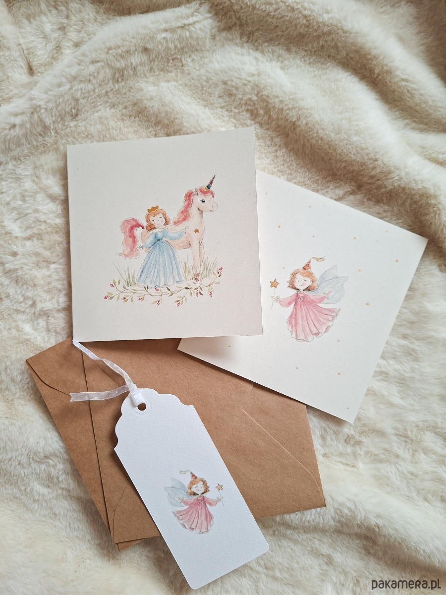 Kartka z księżniczką i jednorożcem w zestawie z zakładką