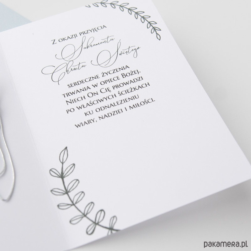 Kartka z okazji Chrztu Świętego dziecka z motywem ręcznie rysowanych gałązek.