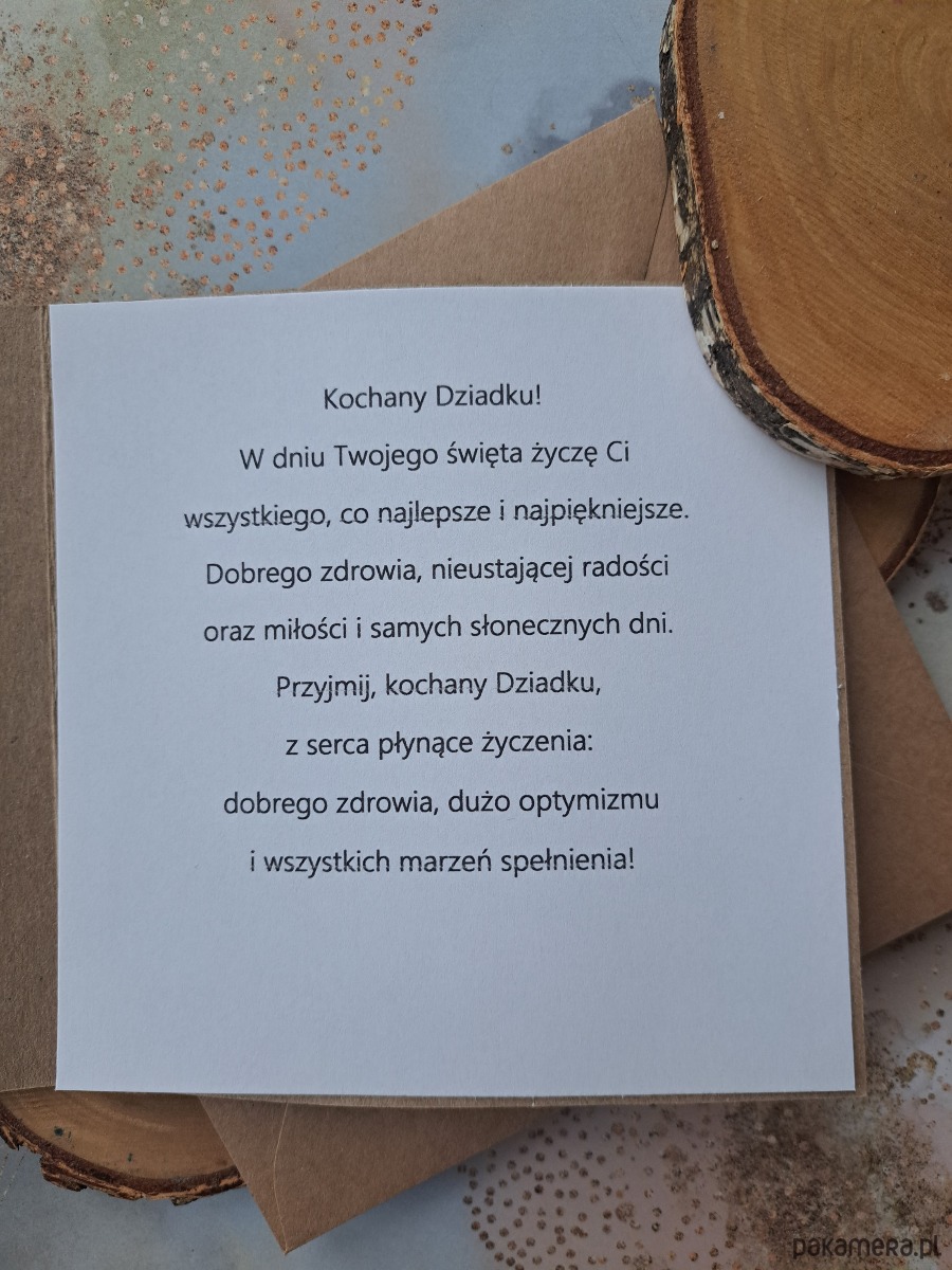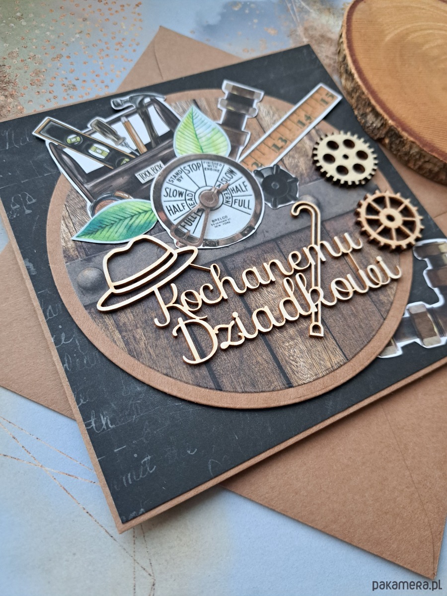 Kartka dla dziadka z napisem "Kochanemu Dziadkowi", z ręcznie wycinanymi elementami.