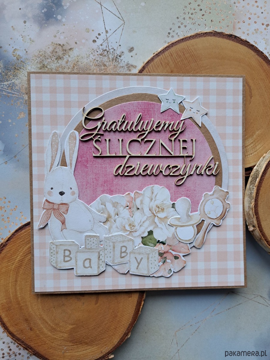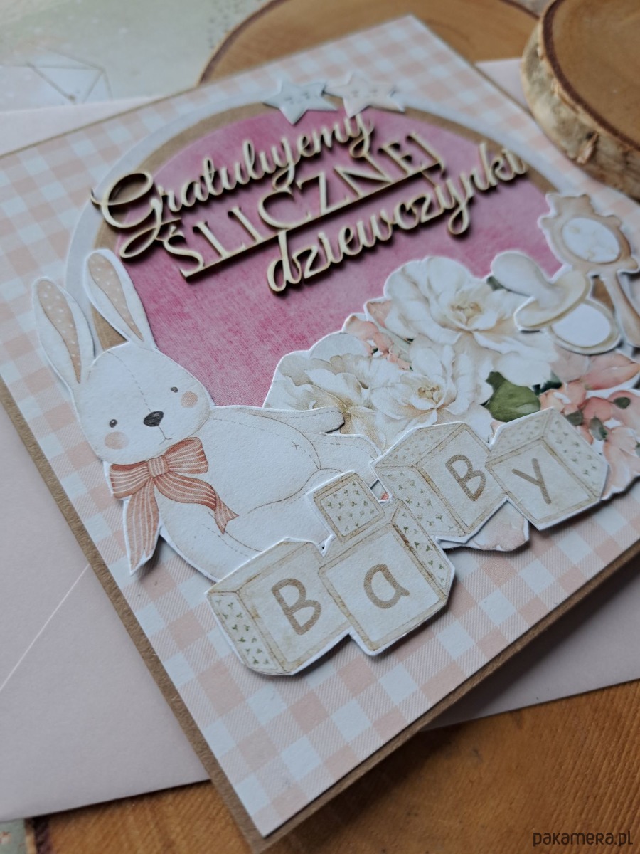 Ręcznie robiona kartka z okazji narodzin córeczki.