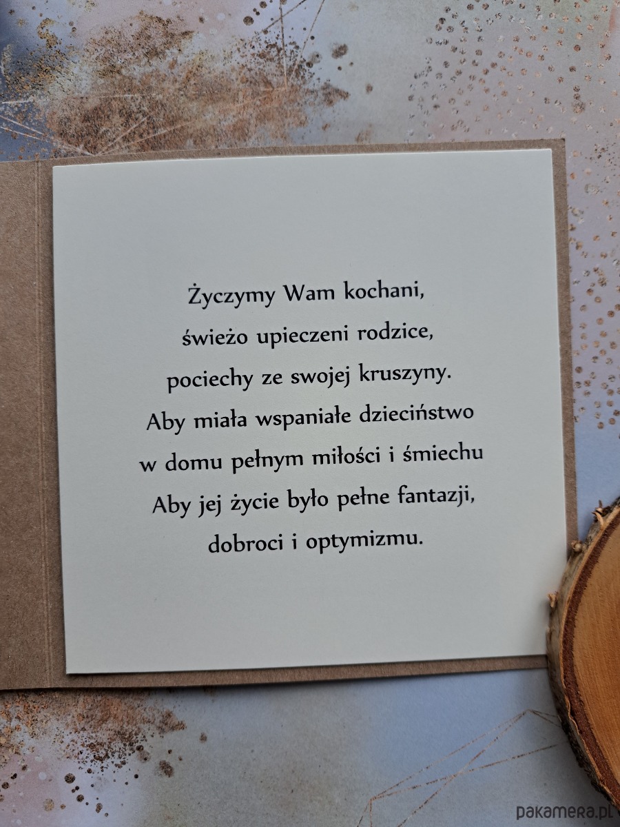 - wklejona kartka z gotowymi życzeniami (można zamienić na pustą)
