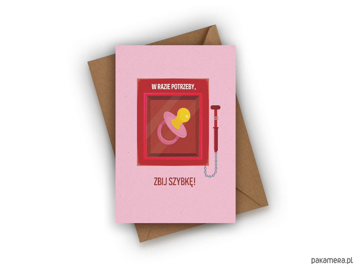 Kartka z okazji narodzin dziecka- W razie potrzeby zbij szybę!
