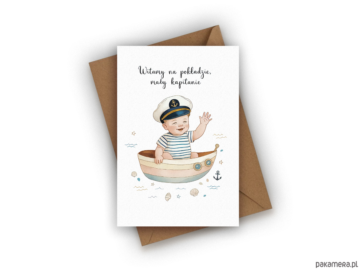 Kartka z okazji narodzin dziecka - Witamy na pokładzie Mały Kapitanie