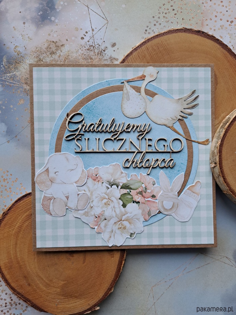 Ręcznie robiona kartka z okazji narodzin synka.