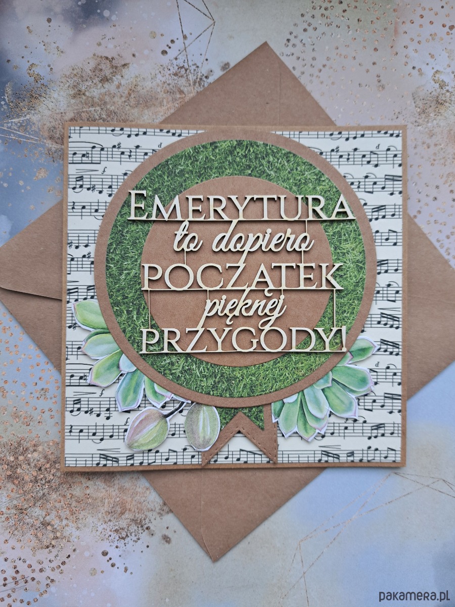 Kartka z okazji przejścia na emeryturę " Emerytura to dopiero początek pięknej przygody".