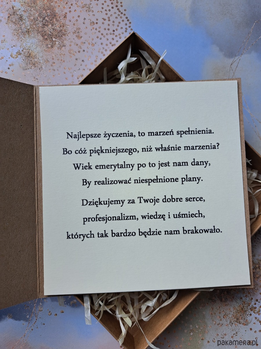 - wklejona do środka kartka z gotowymi życzeniami (jak na zdjęciu)
