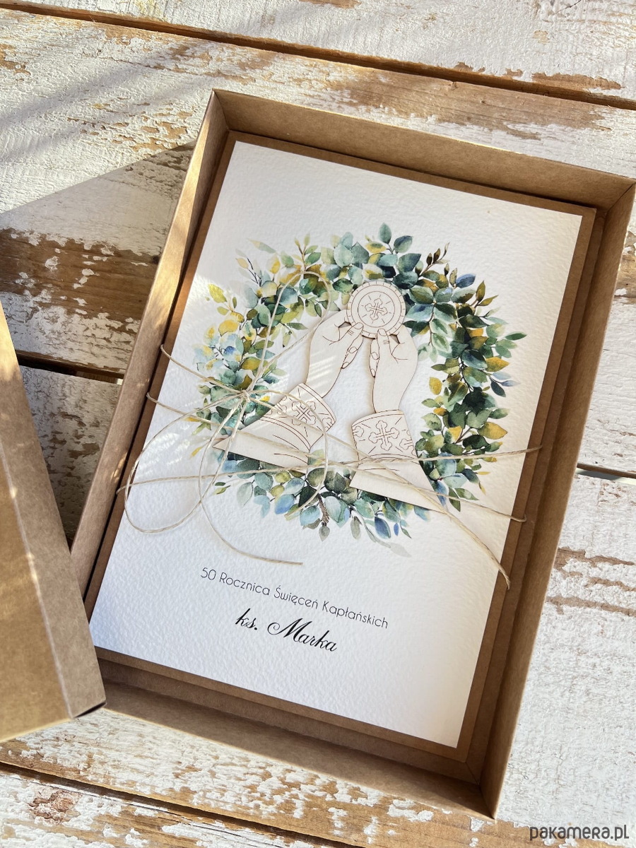 Kartka z okazji rocznicy święceń kapłańskich ręcznie robiona z życzeniami A5 w pudełku - prezent dla księdza