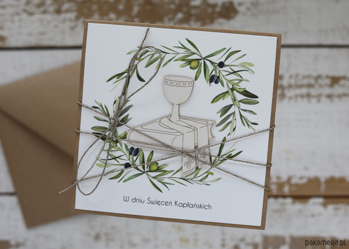 Kartka wykonana z papieru bawełnianego oraz kraftowego. Wymiary: 14x14 cm