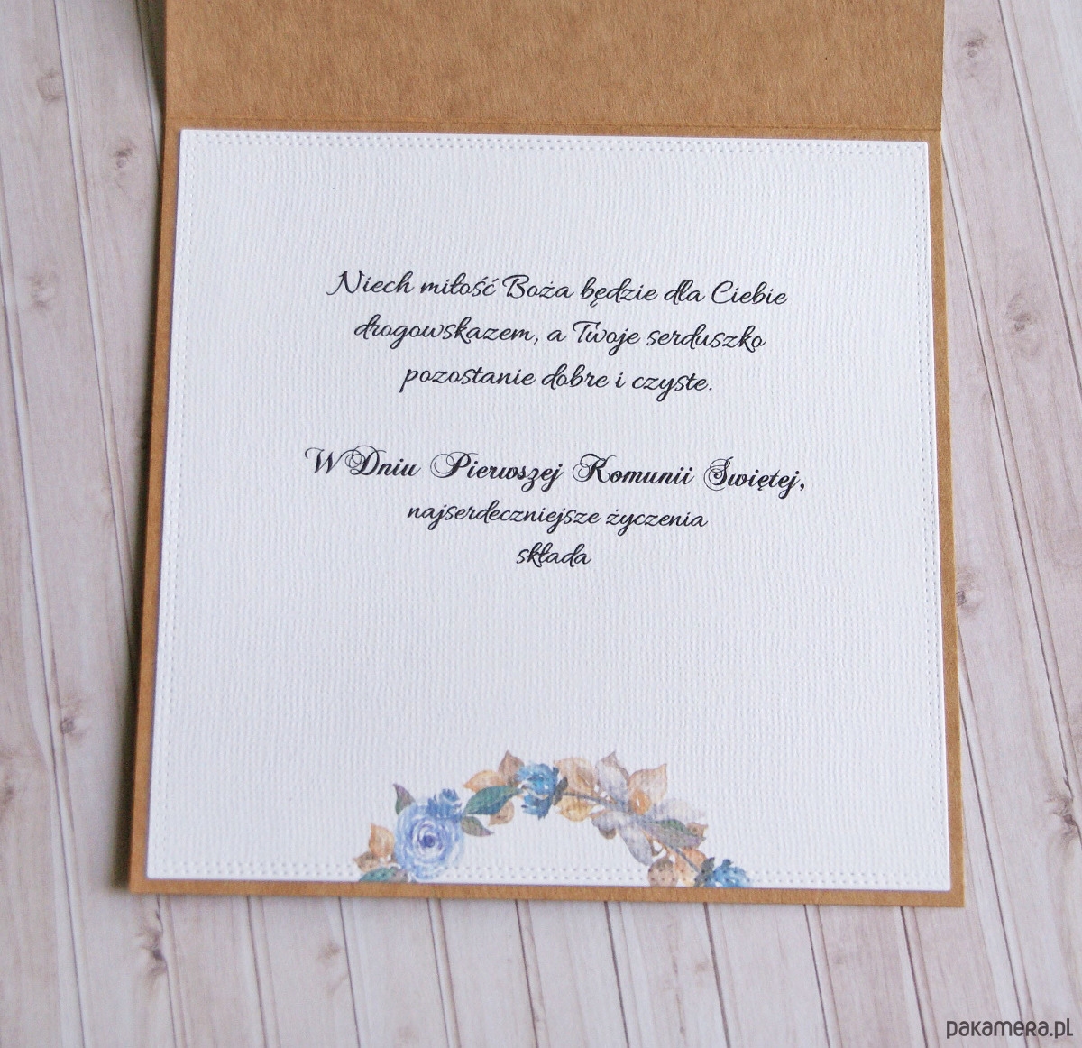 wewnątrz wklejone GOTOWE ŻYCZENIA - w ozdobnej formie - takie jak na zdjęciu.