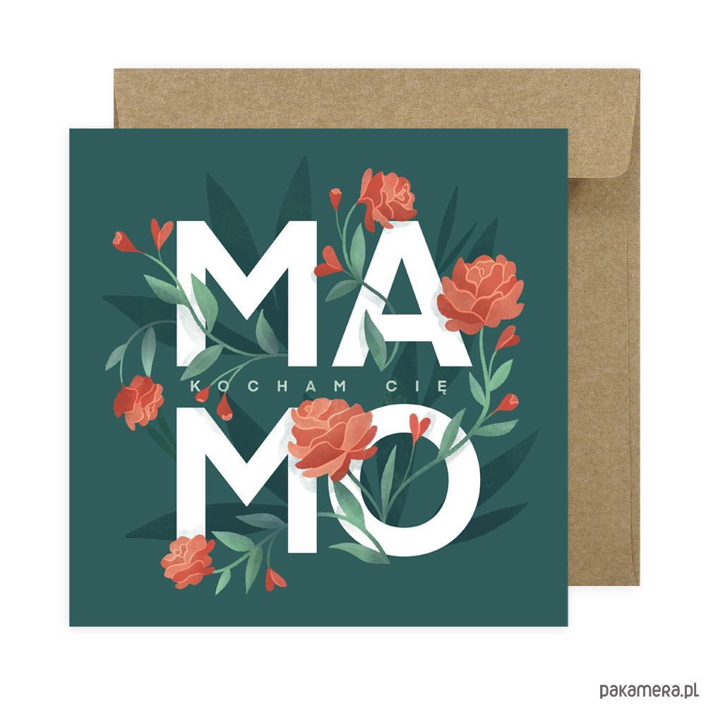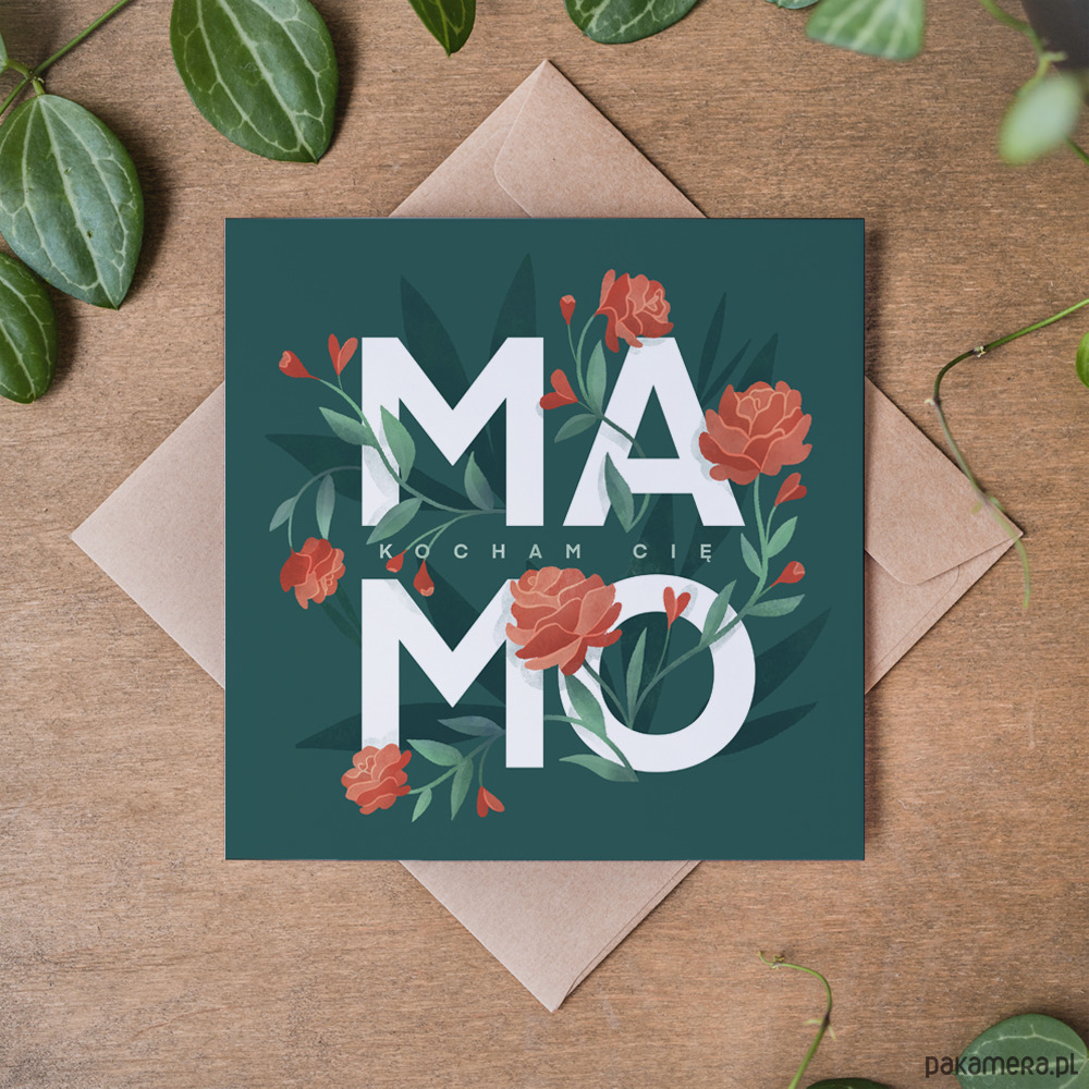 Kartka okolicznościowa na Dzień Mamy z roślinną ilustracją i najważniejszą wiadomością - Kocham Cię Mamo!