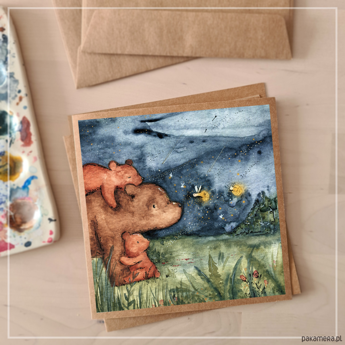 Autorska ilustracja akwarelowa, wydrukowana na grubym 260g papierze ala akwarelowym, naklejana na kartonowy papier craftowy, składana.