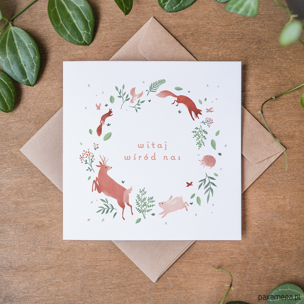 Leśni przyjaciele życzą wszystkiego najlepszego z okazji narodzin nowej osóbki! Pogratuluj świeżo upieczonym rodzicom i powitaj ich pociechę kartką z autorską ilustracją i własnymi serdecznymi życzeniami.
