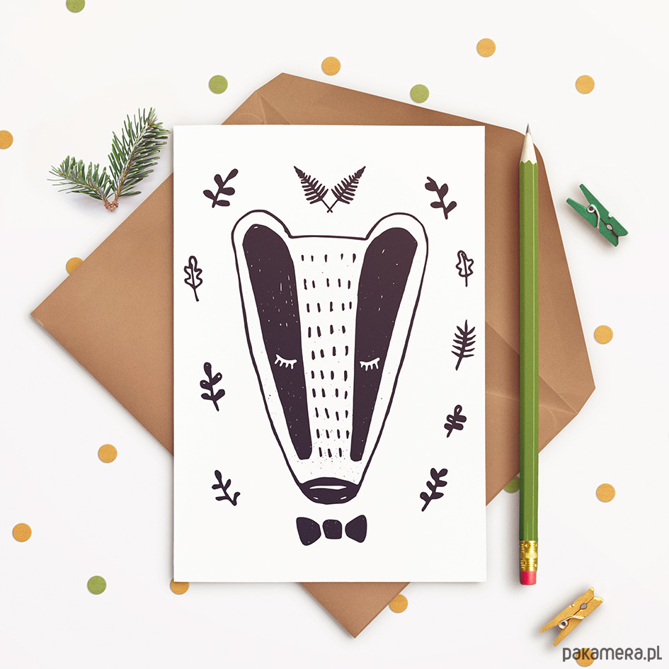 Leśne opowieści- pocztówka z borsukiem