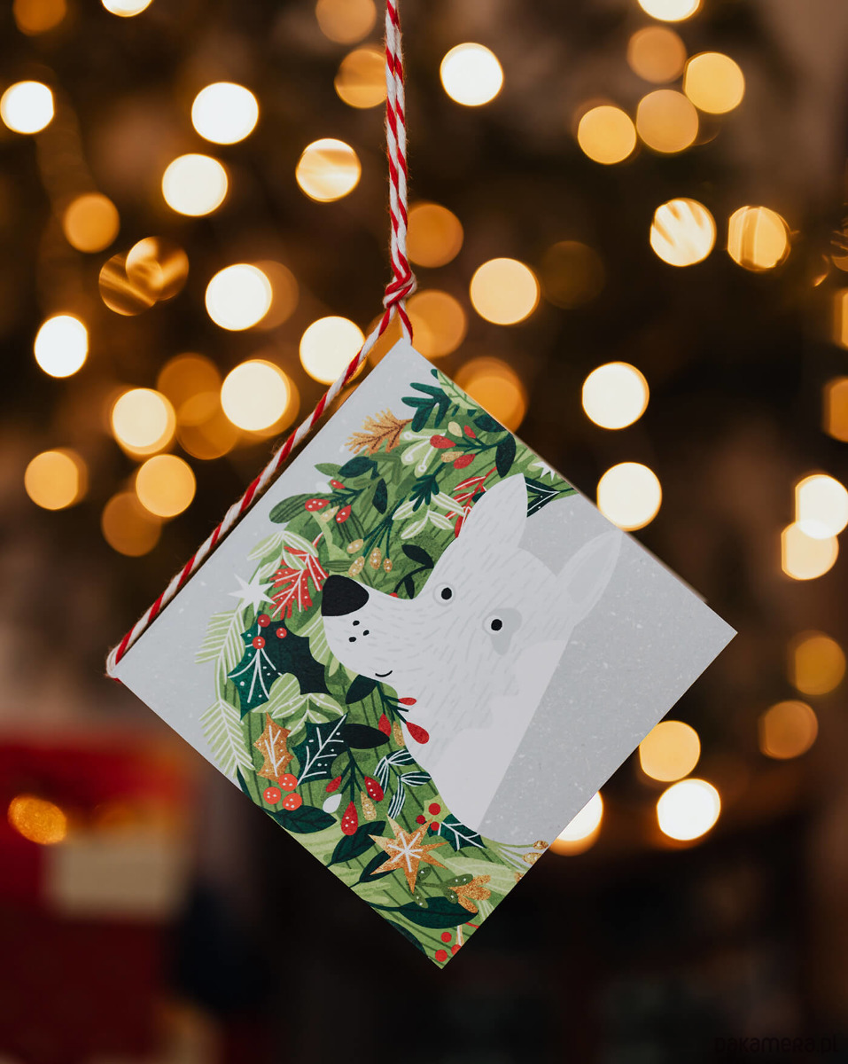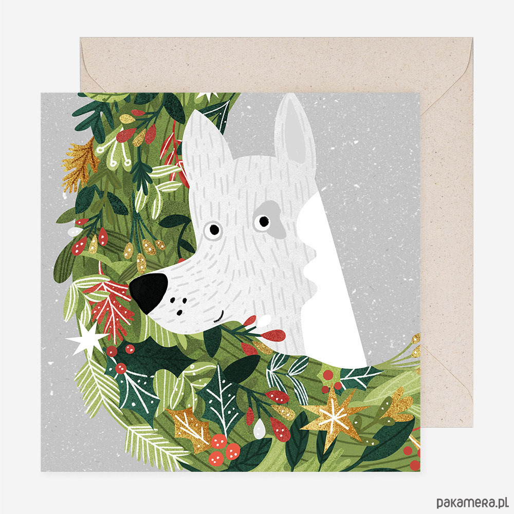 Ten przeuroczy psiak w świątecznym wydaniu znalazł się na naszej kartce, dzięki zdolnej polskiej ilustratorce - Marcie Nawrockiej.