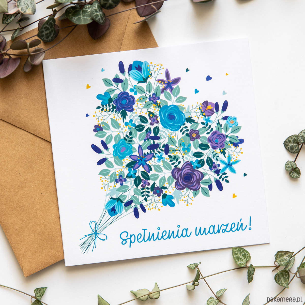 Kartka "Najlepsze życzenia!" – niebieska – składana, kwadrat