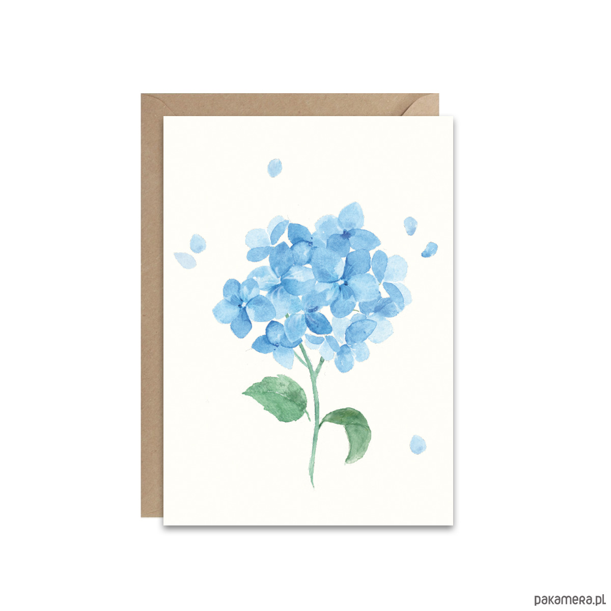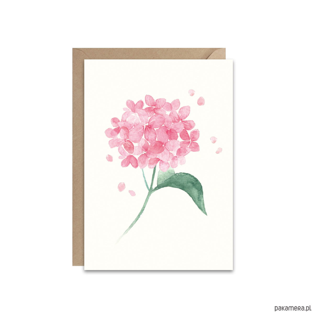 Otwierana kartka z życzeniami na różne okazje z akwarelową ilustracją hortensji w dwóch kolorach - różowa i niebieska. Oryginał malowany ręcznie, następnie ilustracja reprodukowana cyfrowo. Kartka doskonała na urodziny, imieniny, rocznice, podziękowania i gratulacje i inne miłe słowa.
