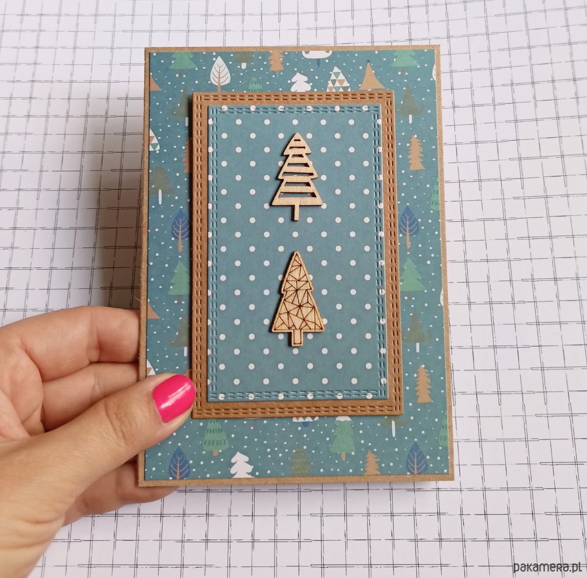 Każda kartka wykonana na bardzo bazie grubego kartonu EKO-kraft (100% makulatury), ozdobiona wzorzystymi kartonami ułożonymi warstwowo i elementami drewnianymi. konstrukcja lekko przestrzenna.