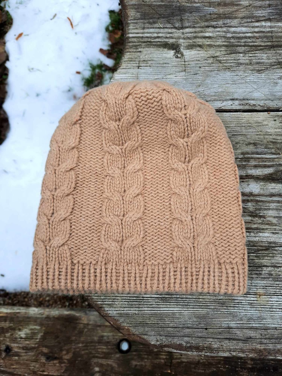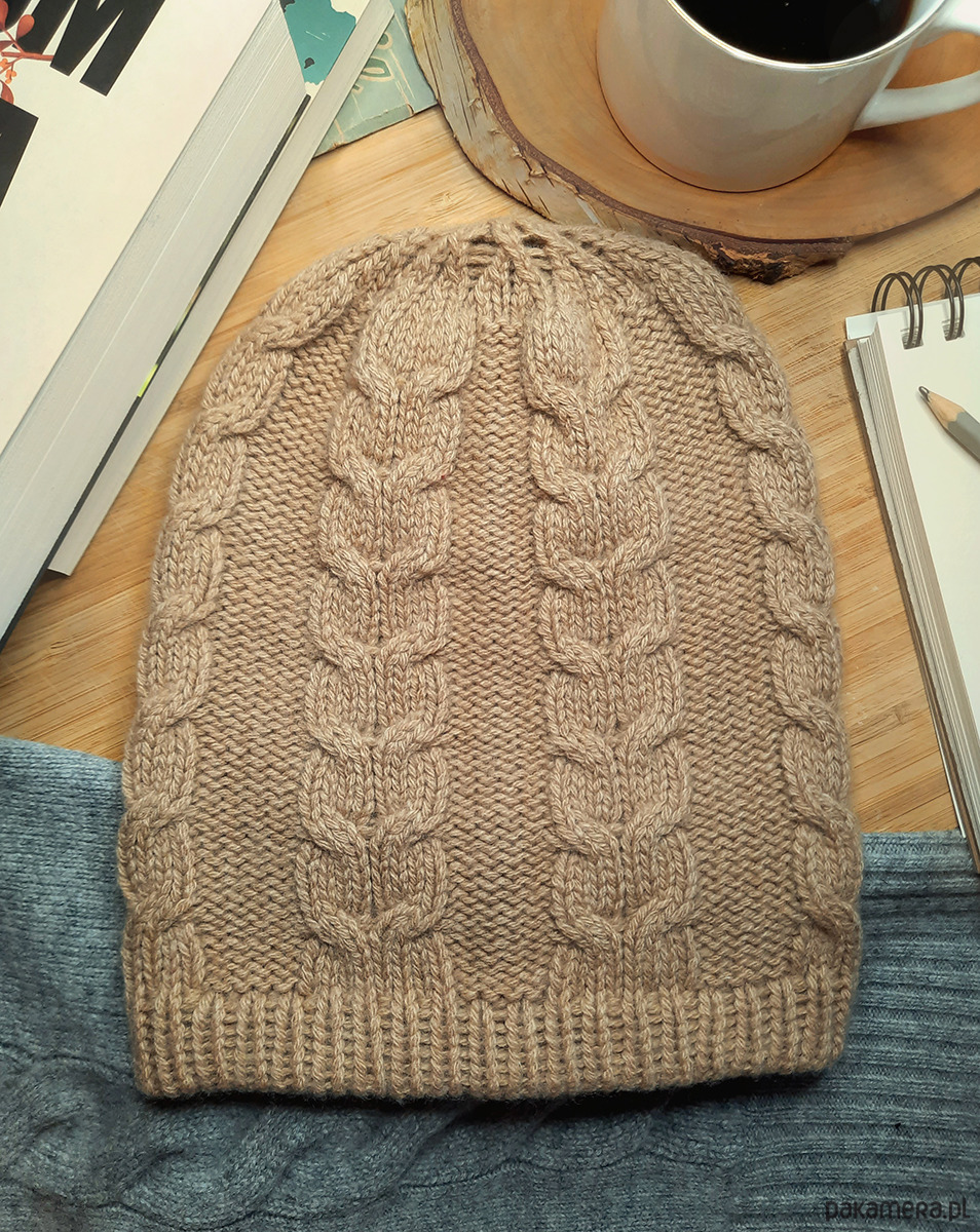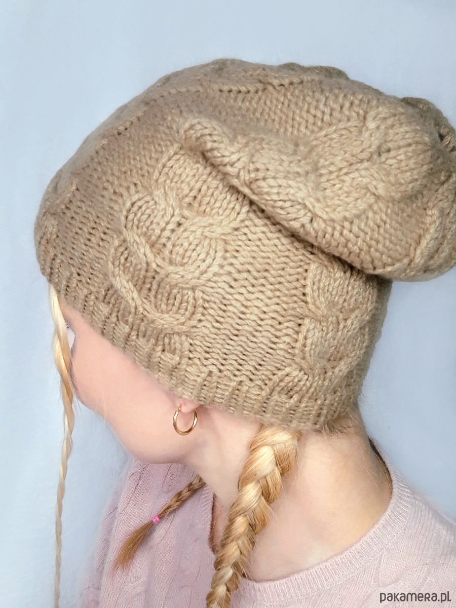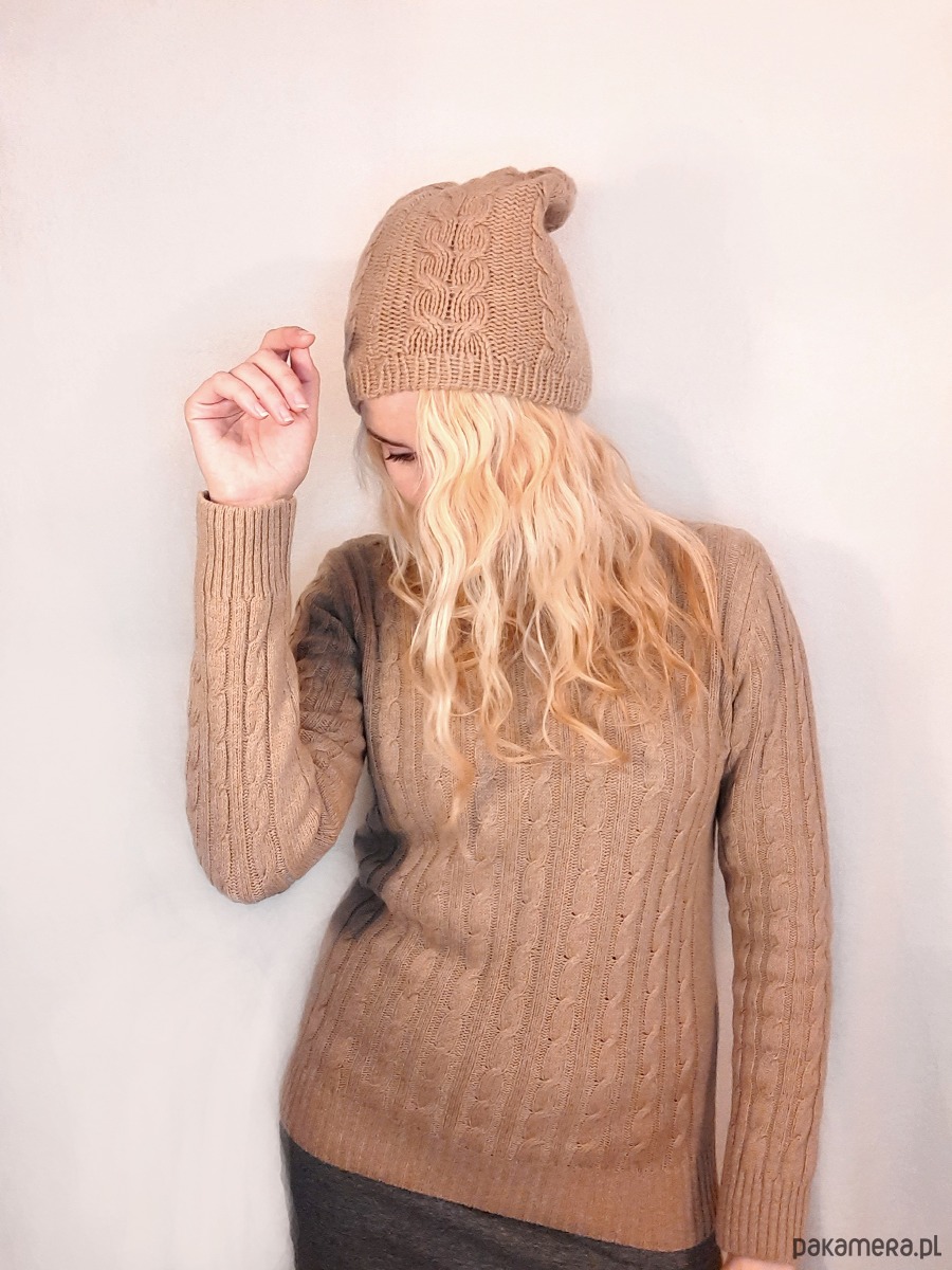 Kaszmirowa czapka- czapka z kaszmiru 100% beżowa warkocz