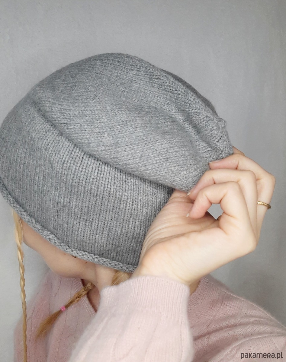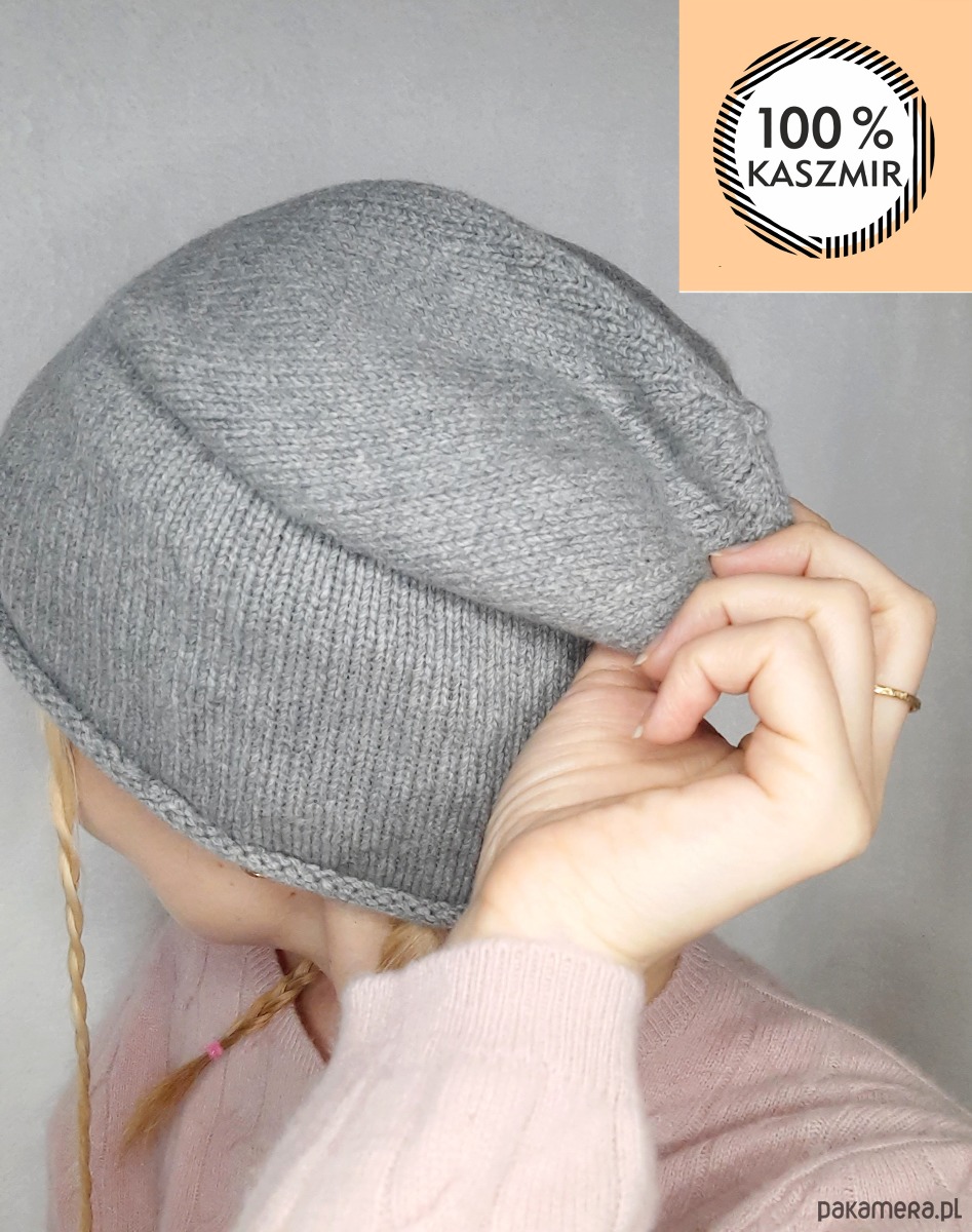 Kaszmirowa czapka- czapka z kaszmiru 100% szara gładka