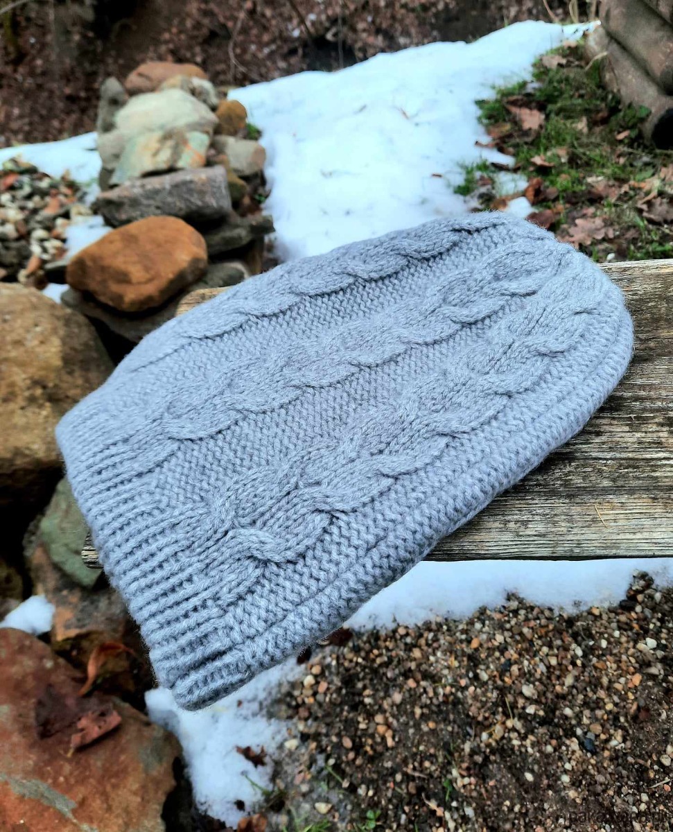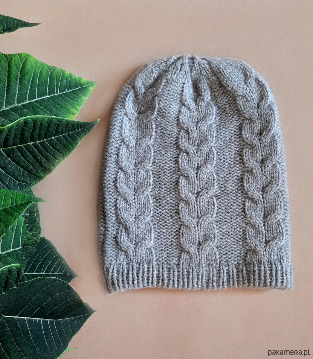 Kaszmirowa czapka- czapka z kaszmiru 100% szara warkocz