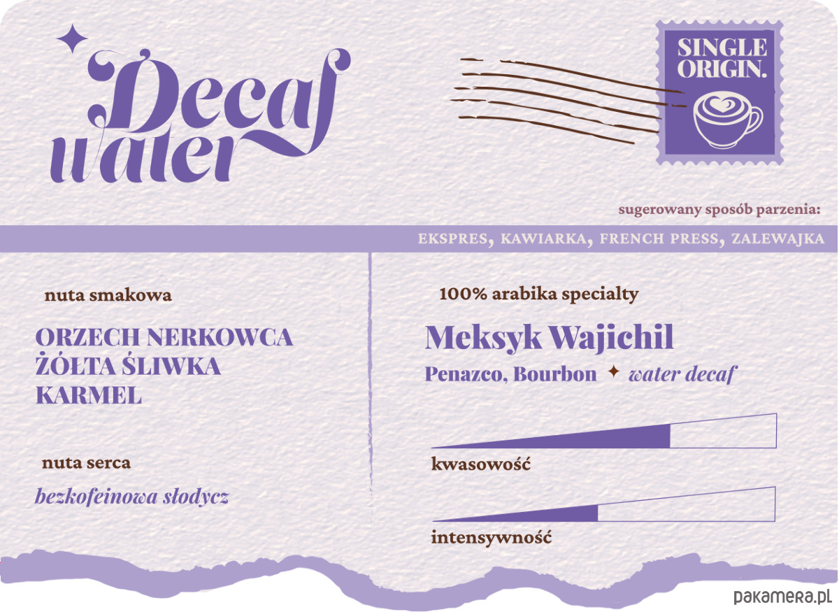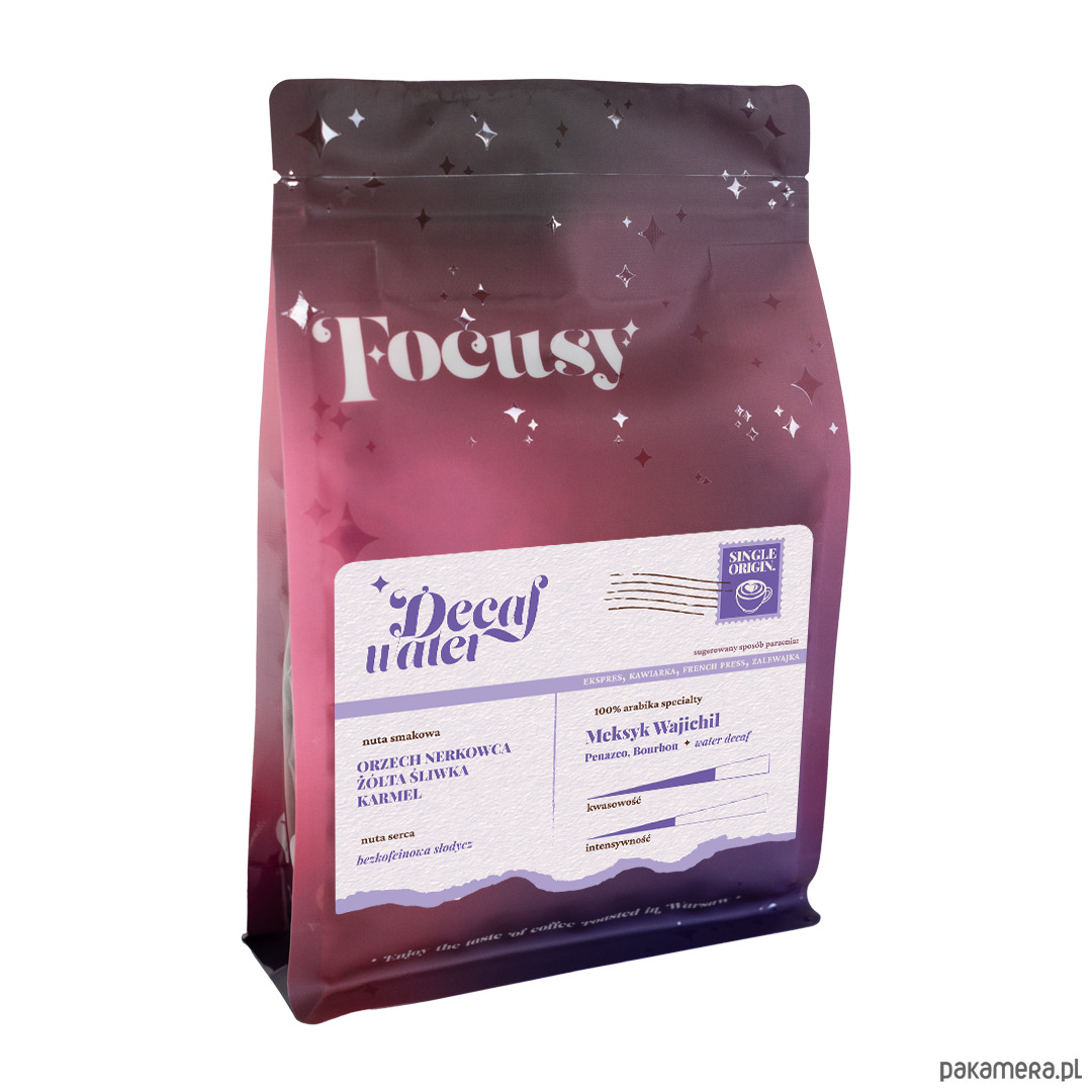 Palarnia kawy Focusy poleca słodkie bezkofeinowe ziarna do espresso: Ziarna z gatunku Arabika - Penazco i Bourbon pochodzące z Meksyku. W górzystym regionie Jaltenango w stanie Chiapas ponad 300 rodzin należy do organizacji producenckiej La Tribu, działającej na terenie całego Jaltenango i Sierra Madre. Kawa pozyskiwana jest tu od 65 kobiet-producentek, które tworzą wyjątkową i etyczną sieć współpracy. Kawa została poddana procesowi Mountain Water Process w Veracruz – to metoda pozbawiania kofeiny, która pozwala zachować naturalną złożoność i słodycz ziaren, jednocześnie podkreślając ich łagodny charakter.