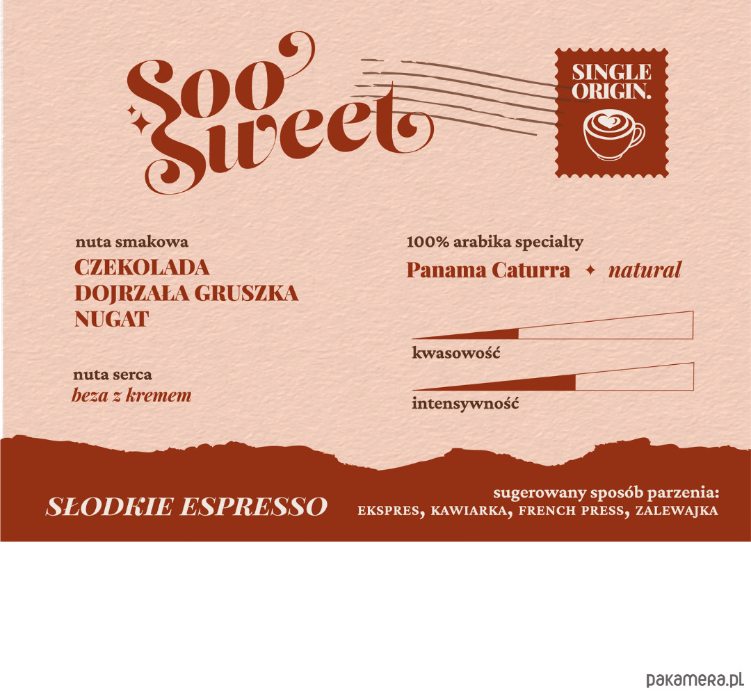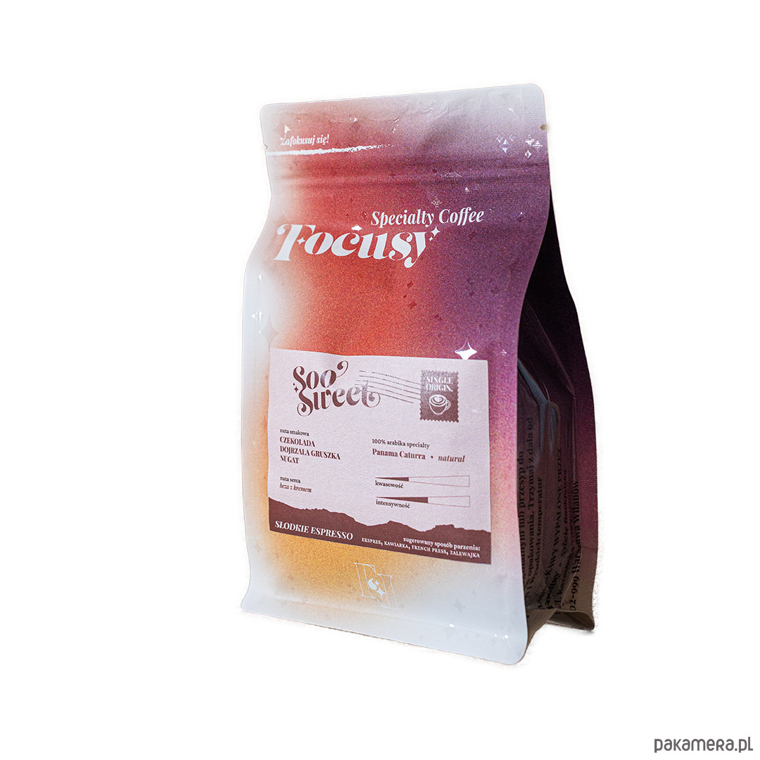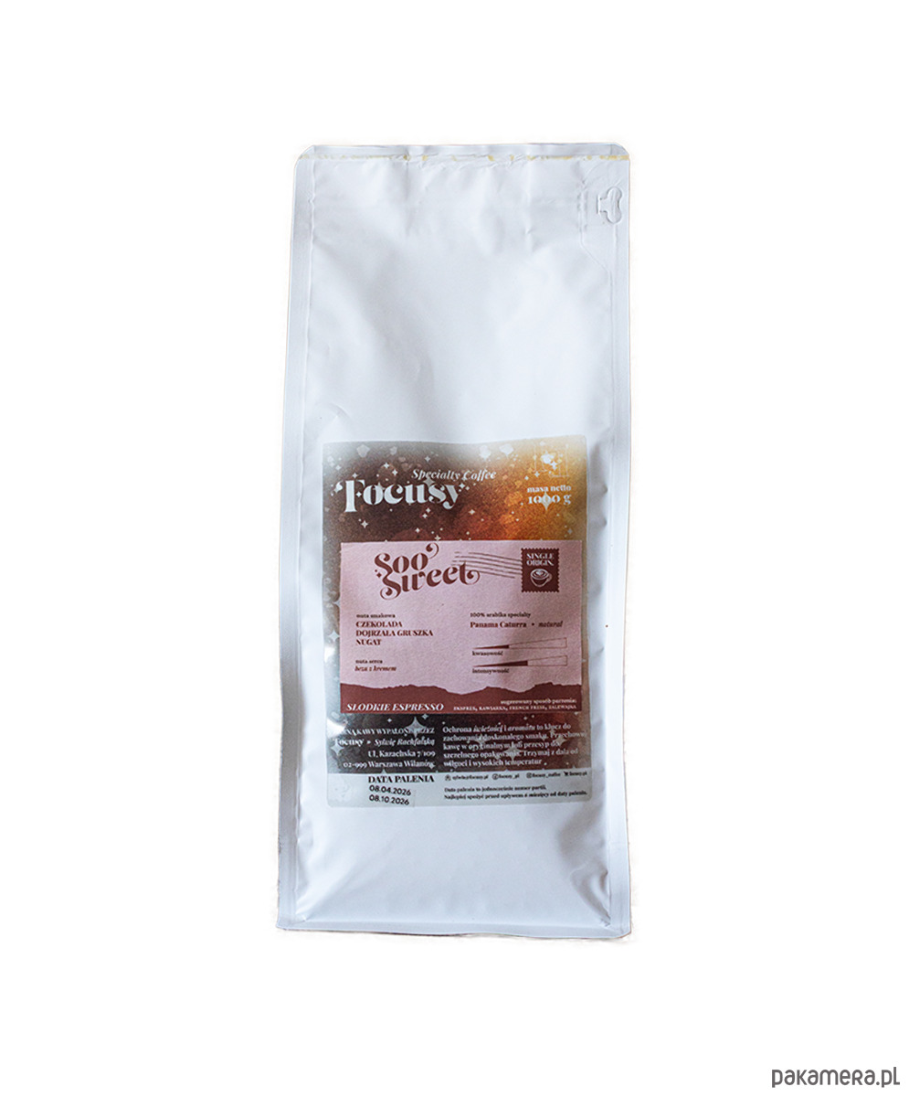 Palarnia kawy Focusy poleca deserowe espresso SOO SWEET: kawa specialty z Panamy, pochodząca z rodzinnej farmy Finca Hartmann w regionie Santa Clara / Renacimiento. 100% Arabica prawiana na wysokości 1200–1400 m n.p.m., należy do odmiany Caturra i została poddana obróbce naturalnej - suszona na słońcu. Finca Hartmann to jedno z najbardziej cenionych gospodarstw w Panamie, prowadzone od pokoleń przez rodzinę, która łączy produkcję kawy z ochroną środowiska. Uprawy prowadzone są w cieniu rodzimych drzew, w sąsiedztwie Parku Narodowego La Amistad, co pozwala zachować naturalną równowagę i wspiera długoterminową jakość ziaren. Naturalna obróbka podkreśla słodycz i pełnię kawy, a staranne suszenie — zarówno na podwyższonych grządkach, jak i w suszarniach — zapewnia spójny i czysty profil. W filiżance dominują nuty czekolady, dojrzałej gruszki i nugatu. Kawa jest słodka, kremowa i pełna, z niską kwasowością i przyjemnym, deserowym charakterem. W Focusach kawa Soo Sweet została wypalona ciemniej, z myślą o espresso i ekspresach automatycznych, żeby wydobyć jej słodycz, gładkość i komfortowy profil. Focusy to palarnia kawy stworzona i w całości prowadzona przez Sylwię Rachfalską, finalistkę Mistr
