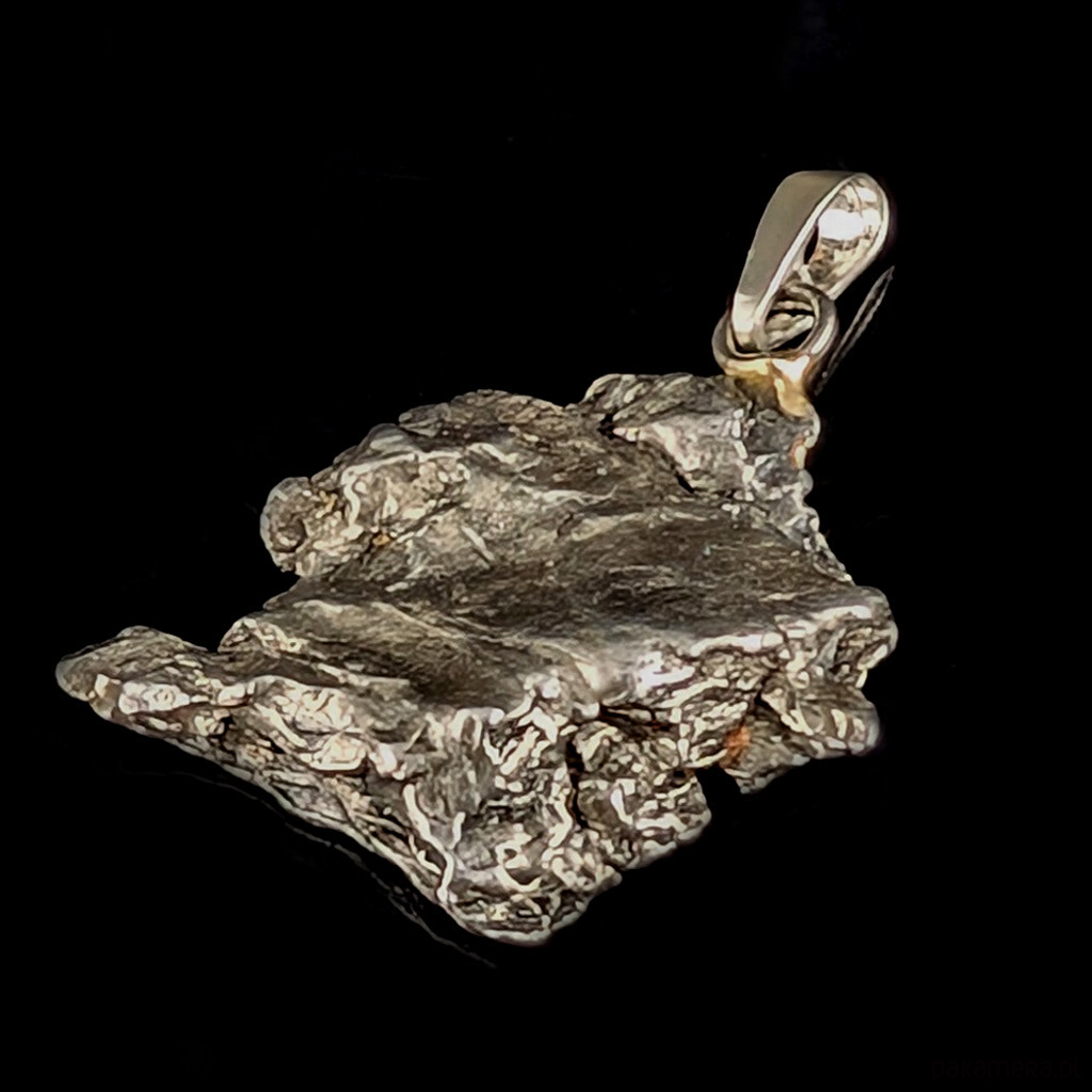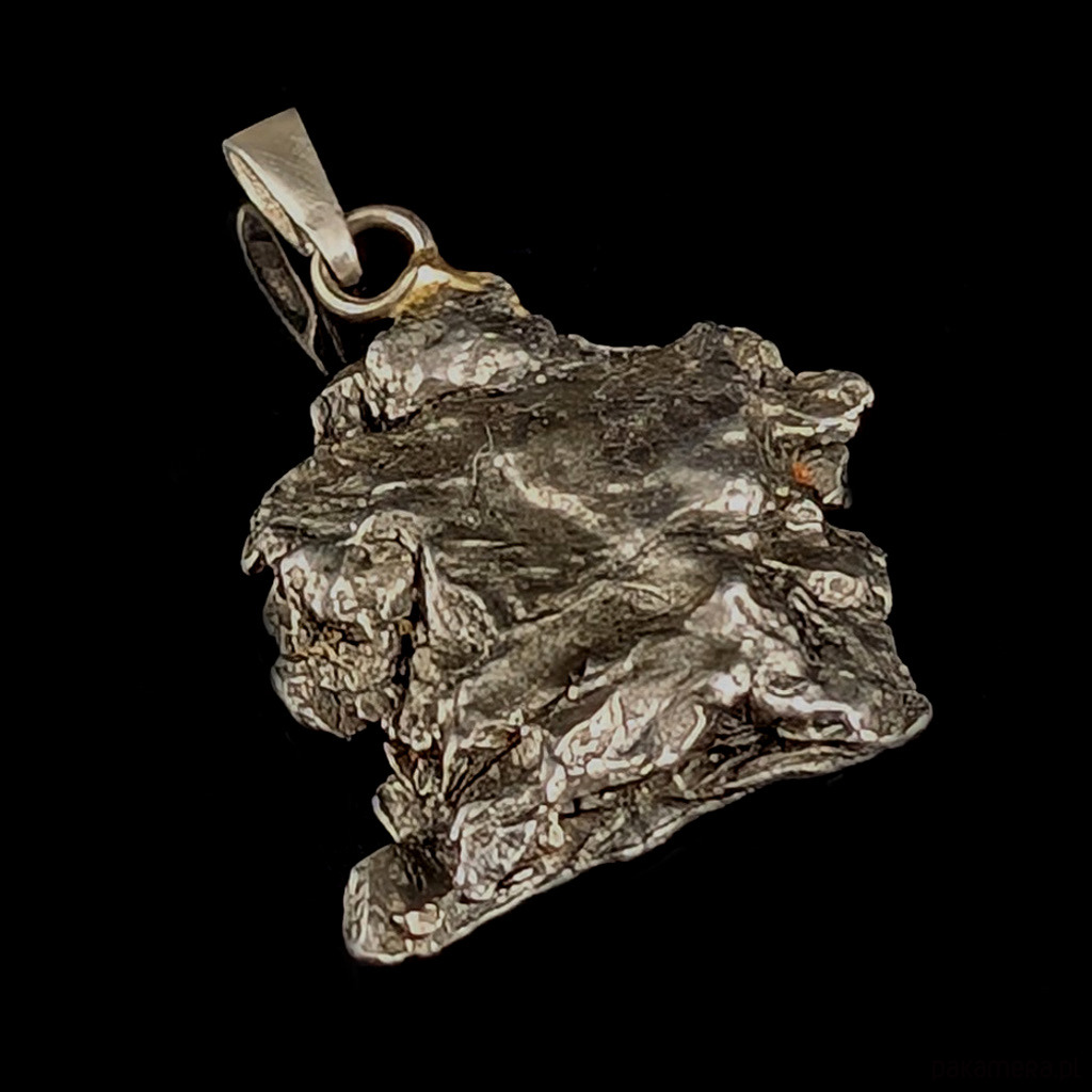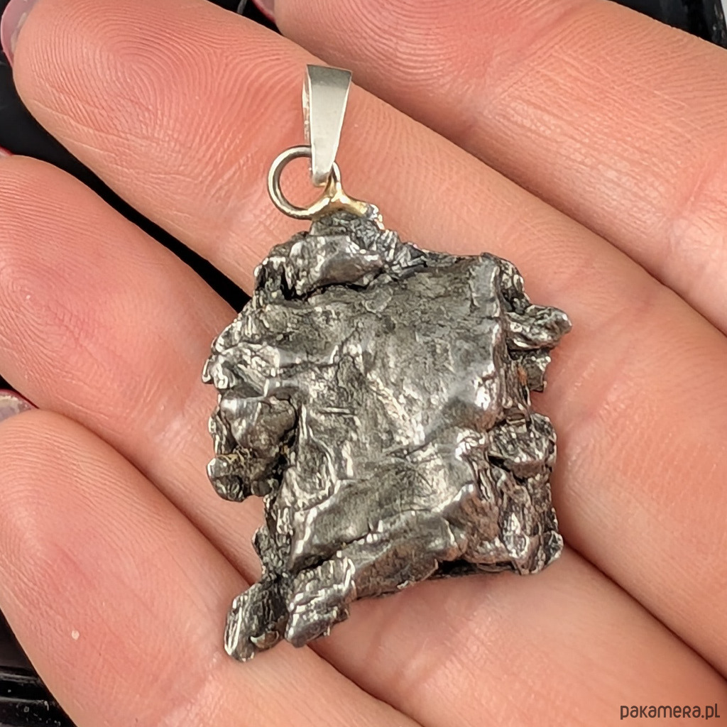 Wisior z okazałym meteorytem żelaznym Campo del Cielo, który znaleziono w 1576 roku w Argentynie. Unikatowy kształt czyni go jedynym w swoim rodzaju. Krawatka srebro 925. Uniwersalny, dla niego lub dla niej. Wymiary 28 x 25 mm. Długość max 34 mm. Waga wisiora 13,4 g. Do meteorytu dołączona zostanie metryka z datą, miejscem spadku i wagą. Wisiorek zostanie zapakowany w ozdobne pudełeczko.