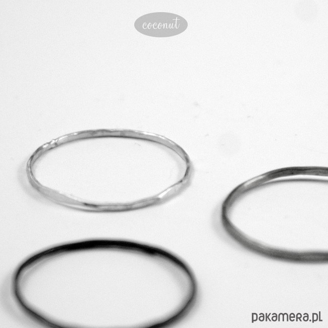 Pojedyncza cienka obrączka ze srebra, wykonana ręcznie, o szerokości ok. 1 mm, po zakupie prosimy podać rozmiar.
