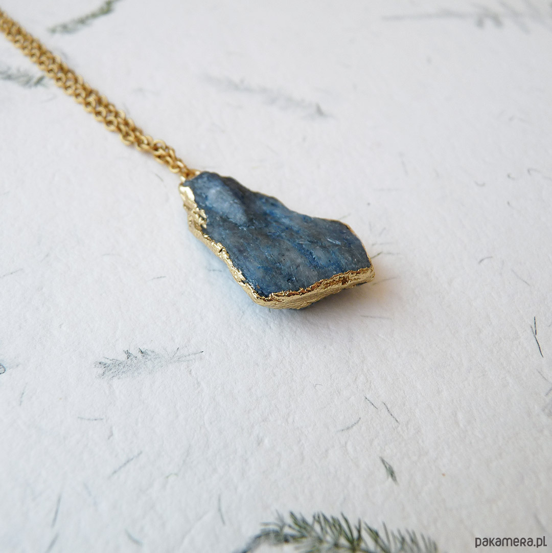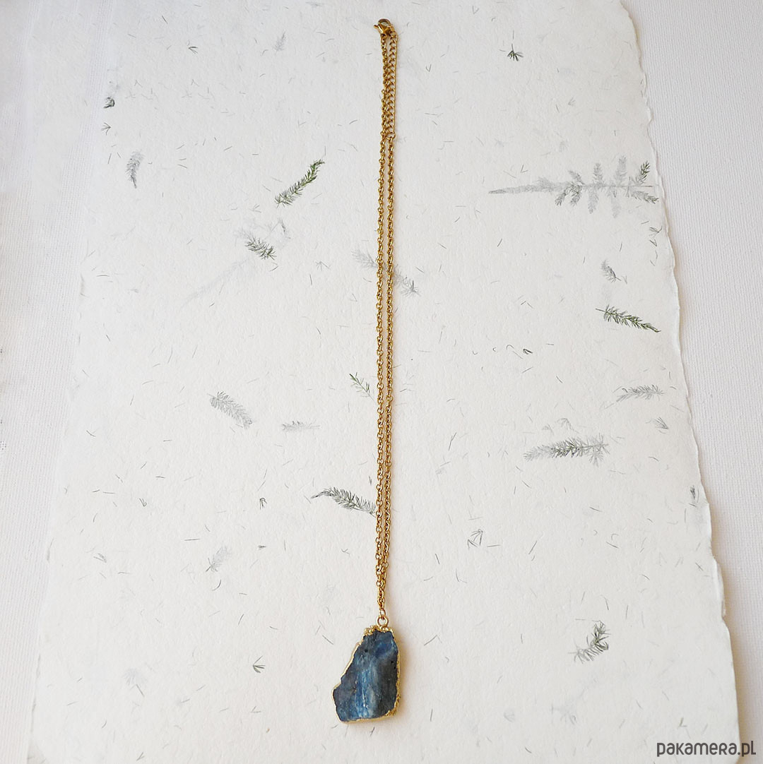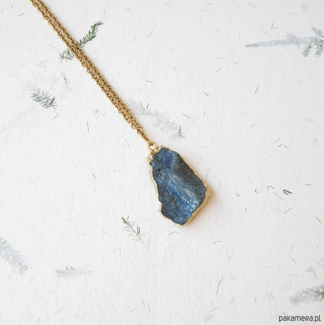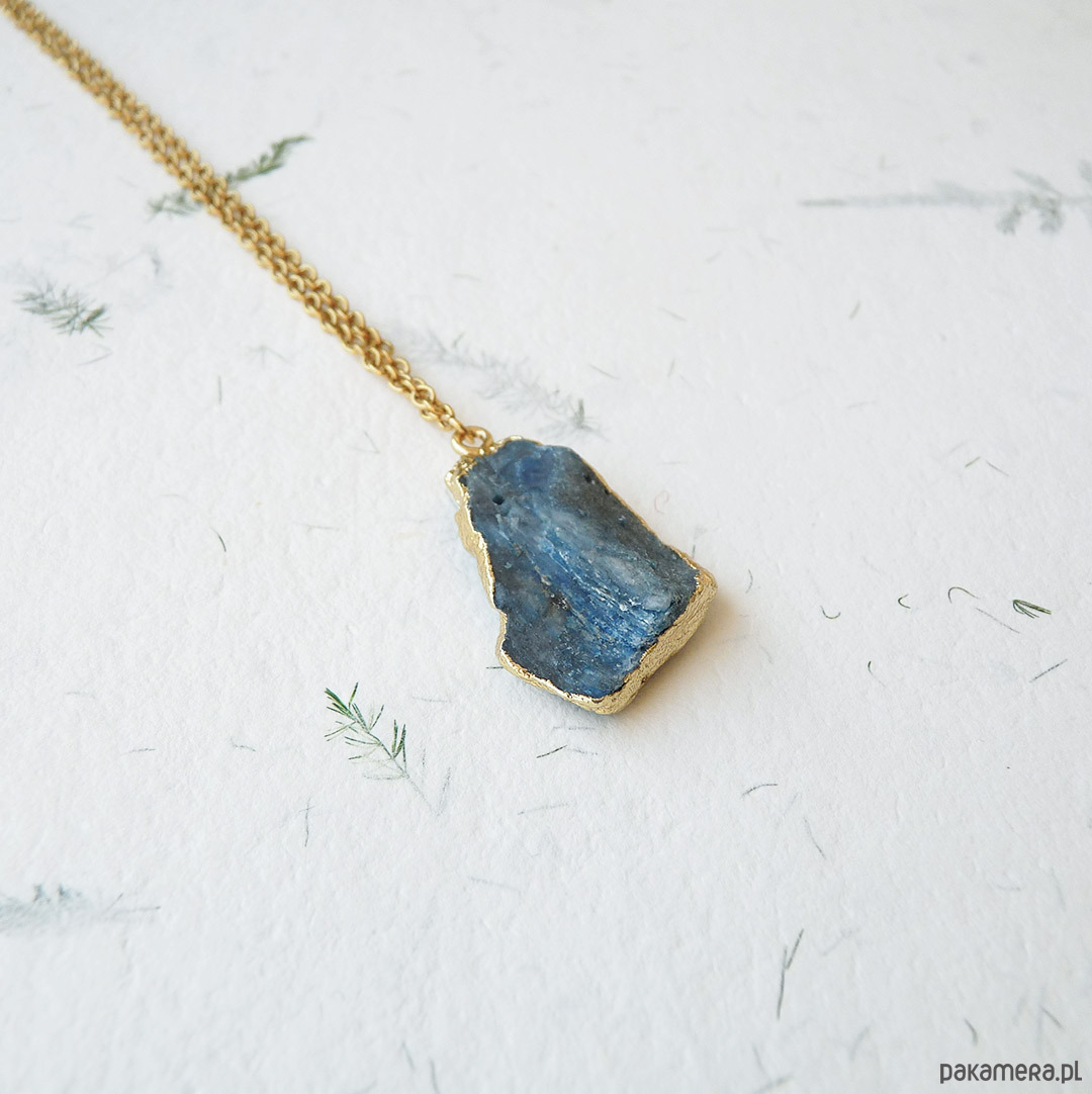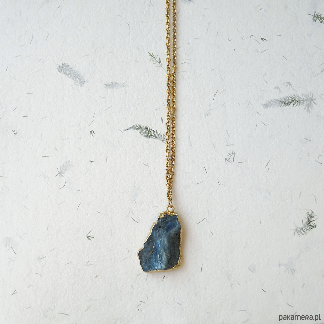 Unikalny wisiorek z niebieskim, surowym kianitem