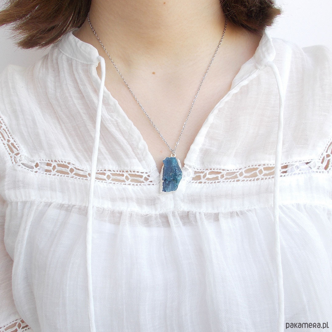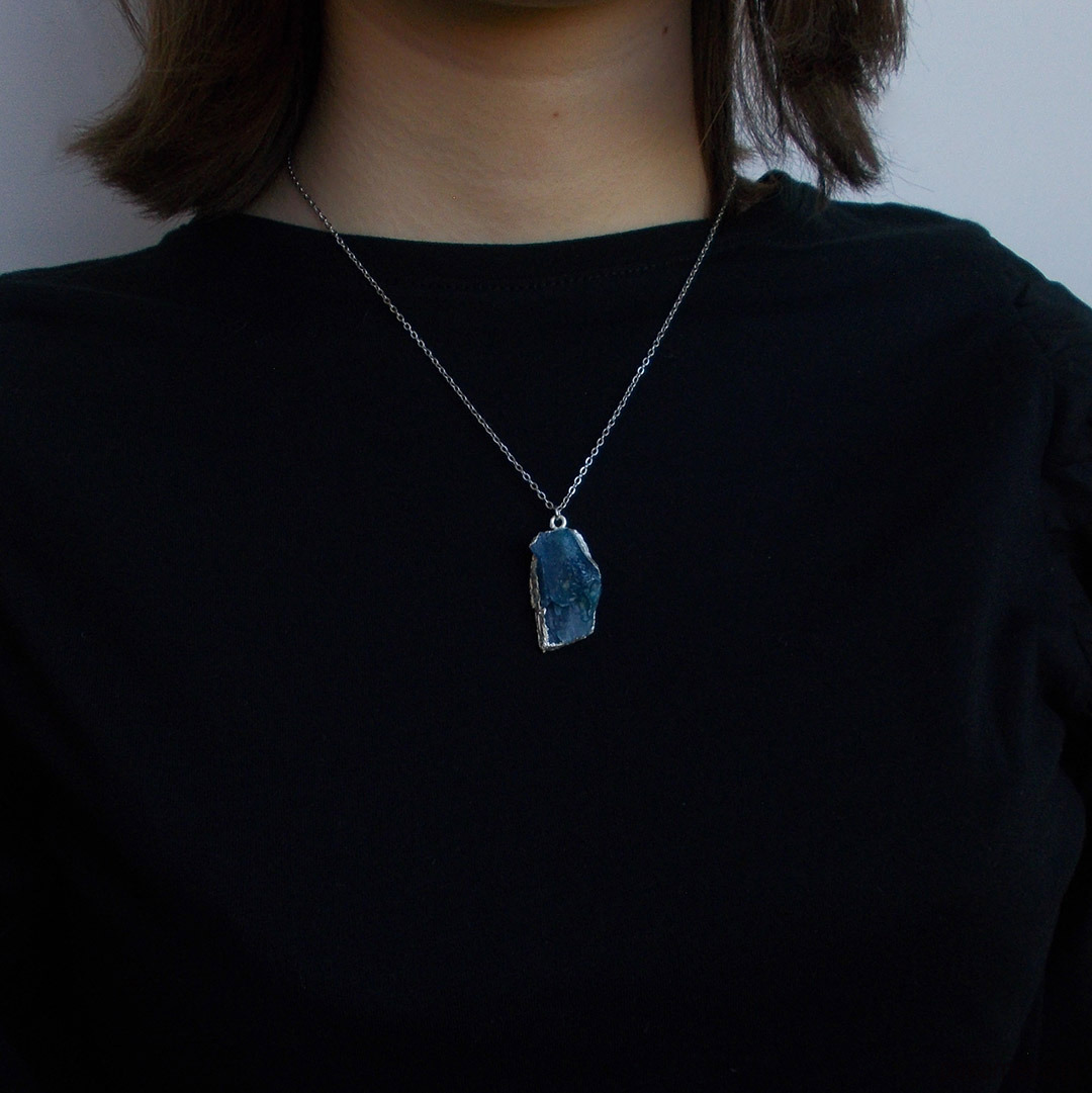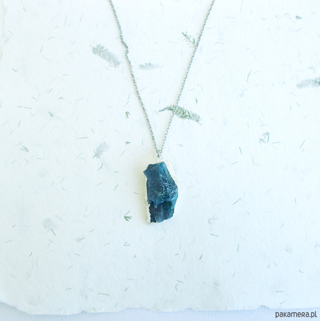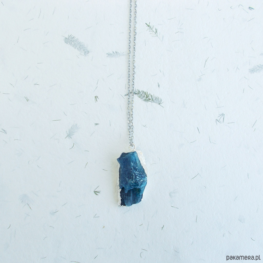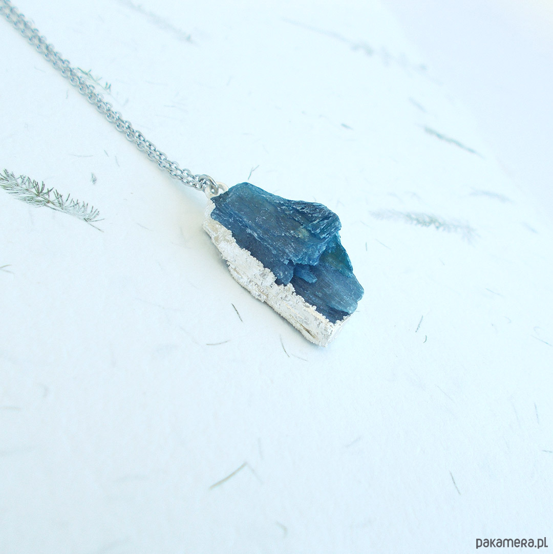 Unikalny wisiorek z ciemnoniebieskim, surowym kianitem