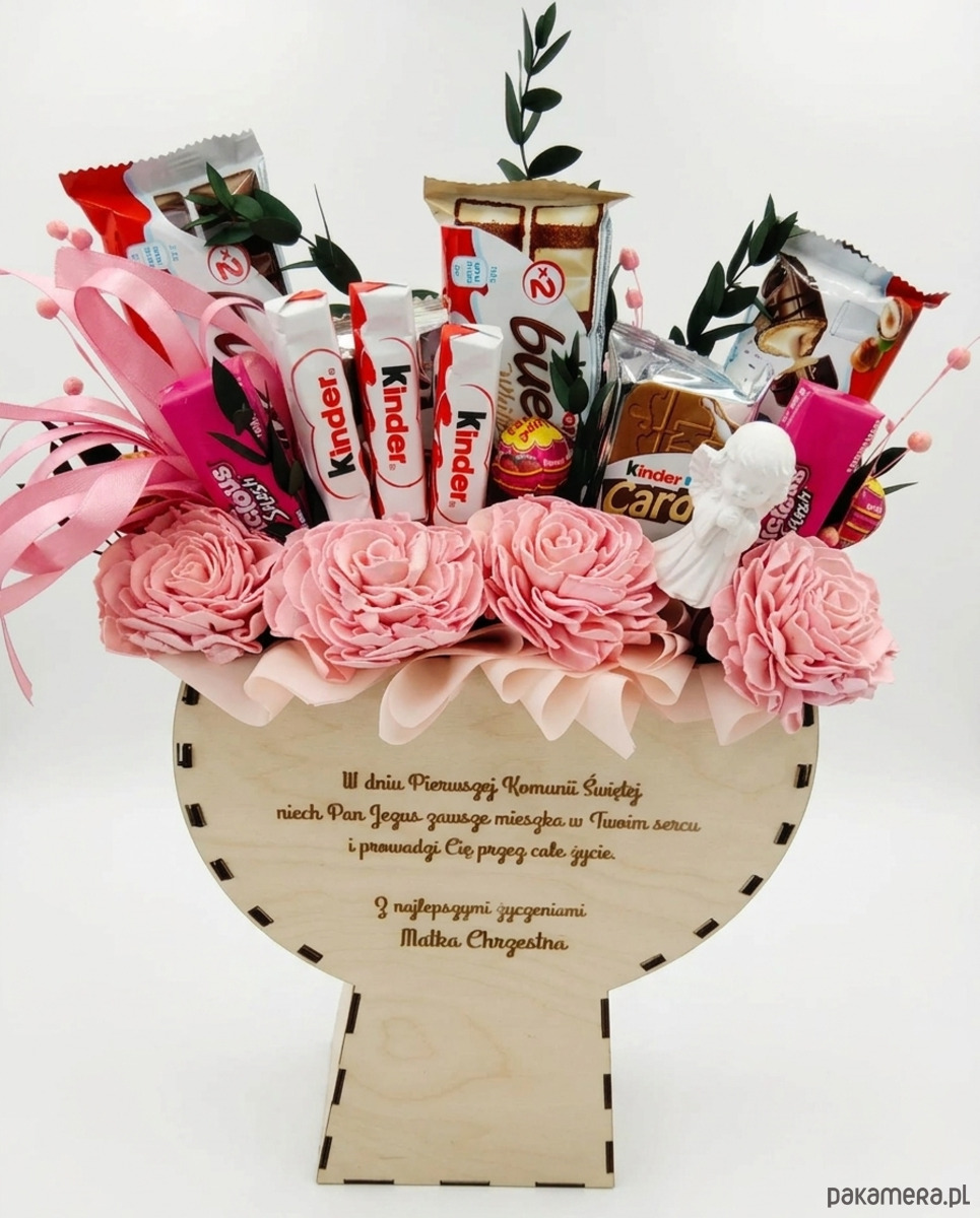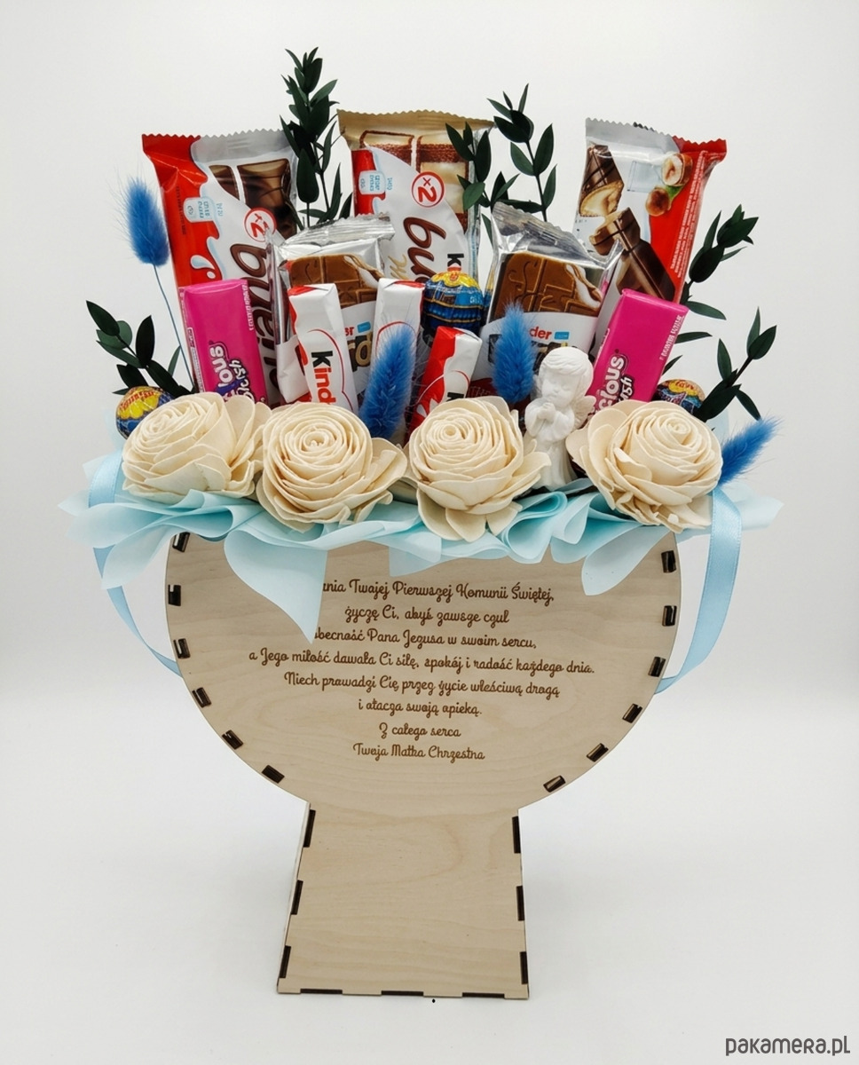Kielich flowerbox komunijny ze słodyczami prezent personalizowany na Komuni
