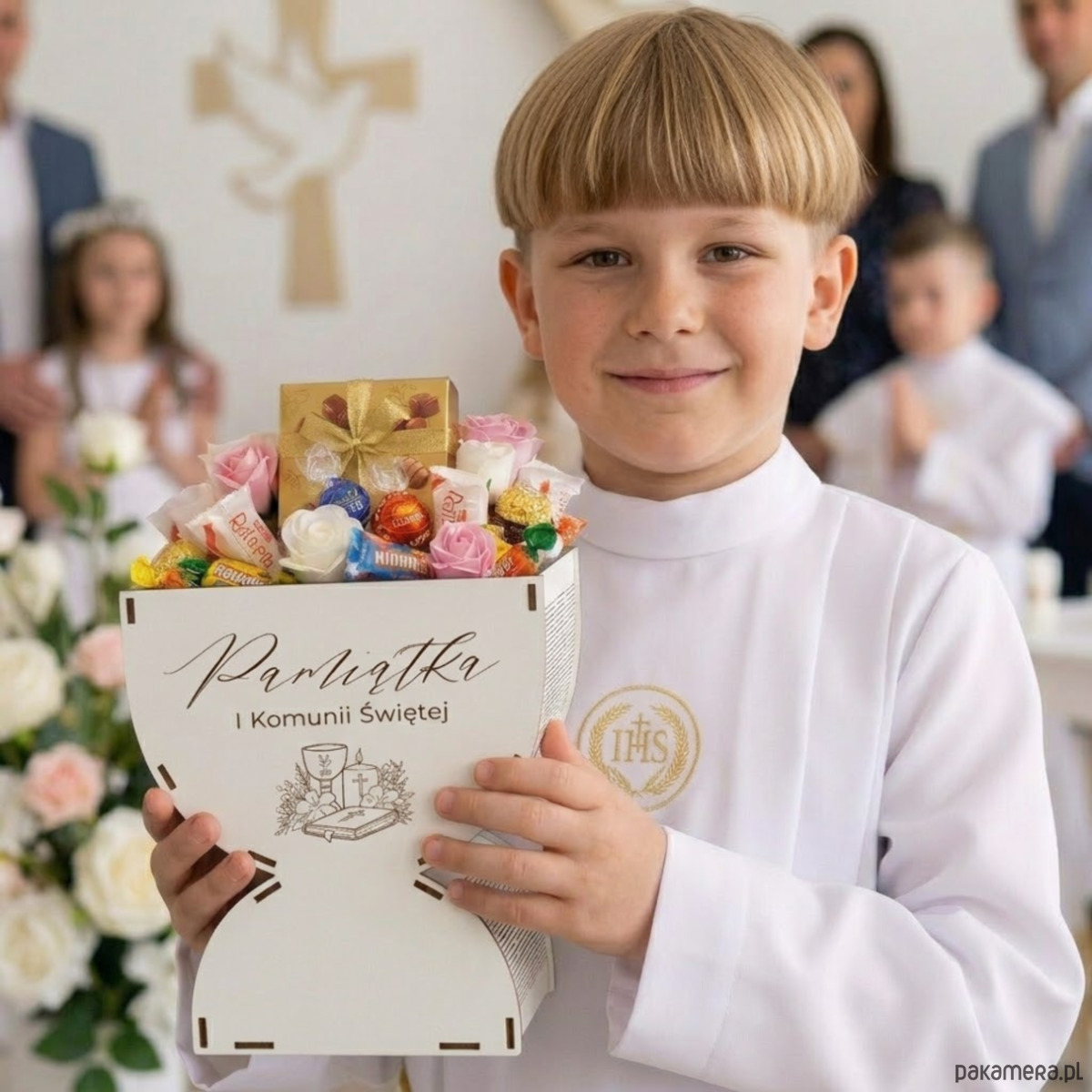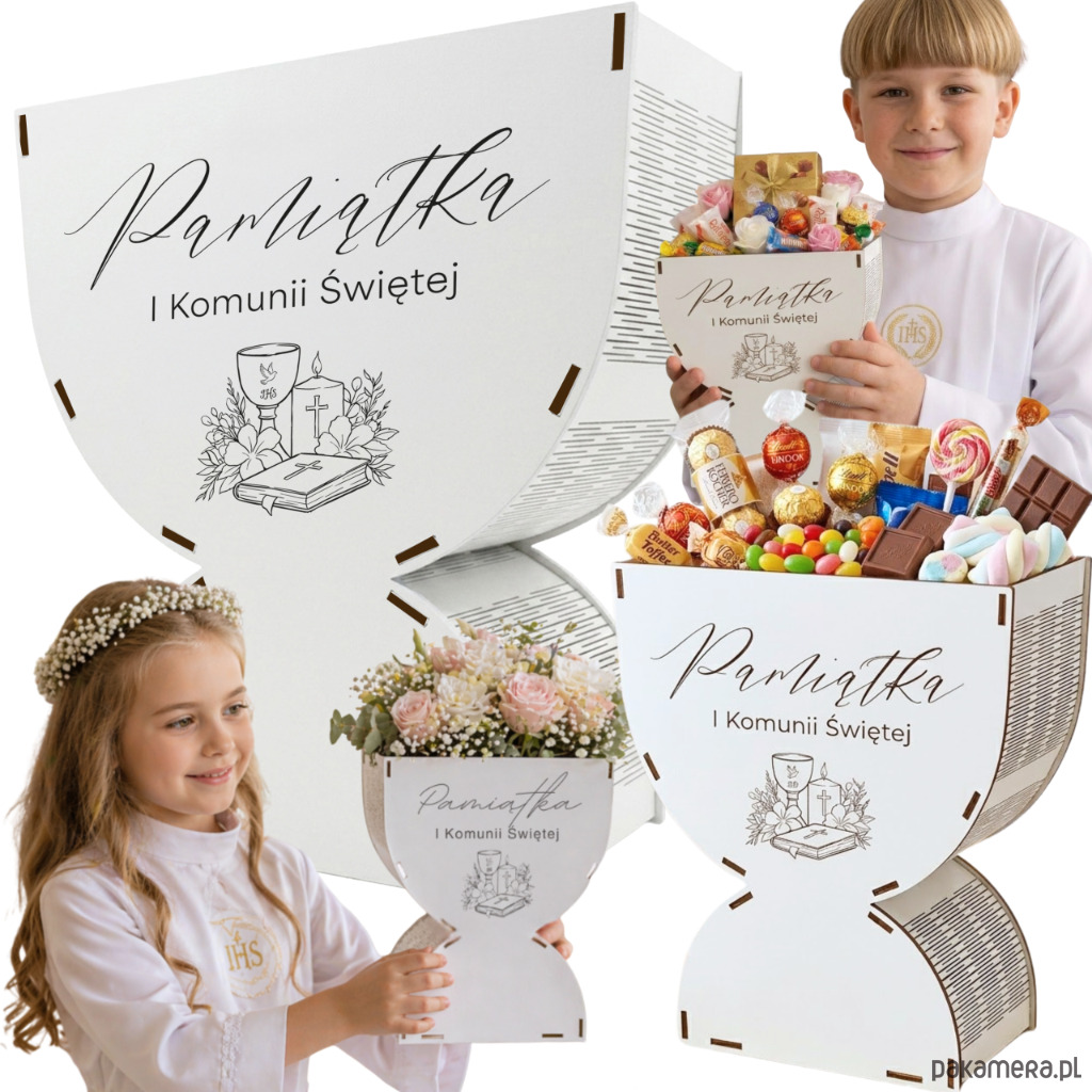 Kielich Komunijny IHS na Słodycze Kwiaty Pudełko BOX Prezent dla Dziecka