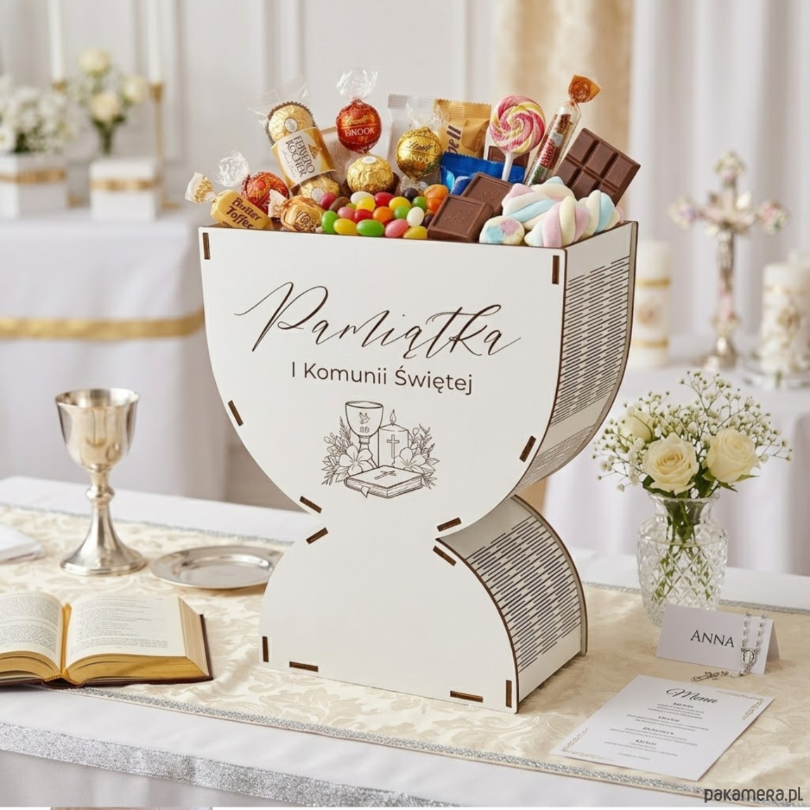 Box Pudełko na Słodycze KIELICH Prezent Pamiątka na Pierwszą Komunię Świętą