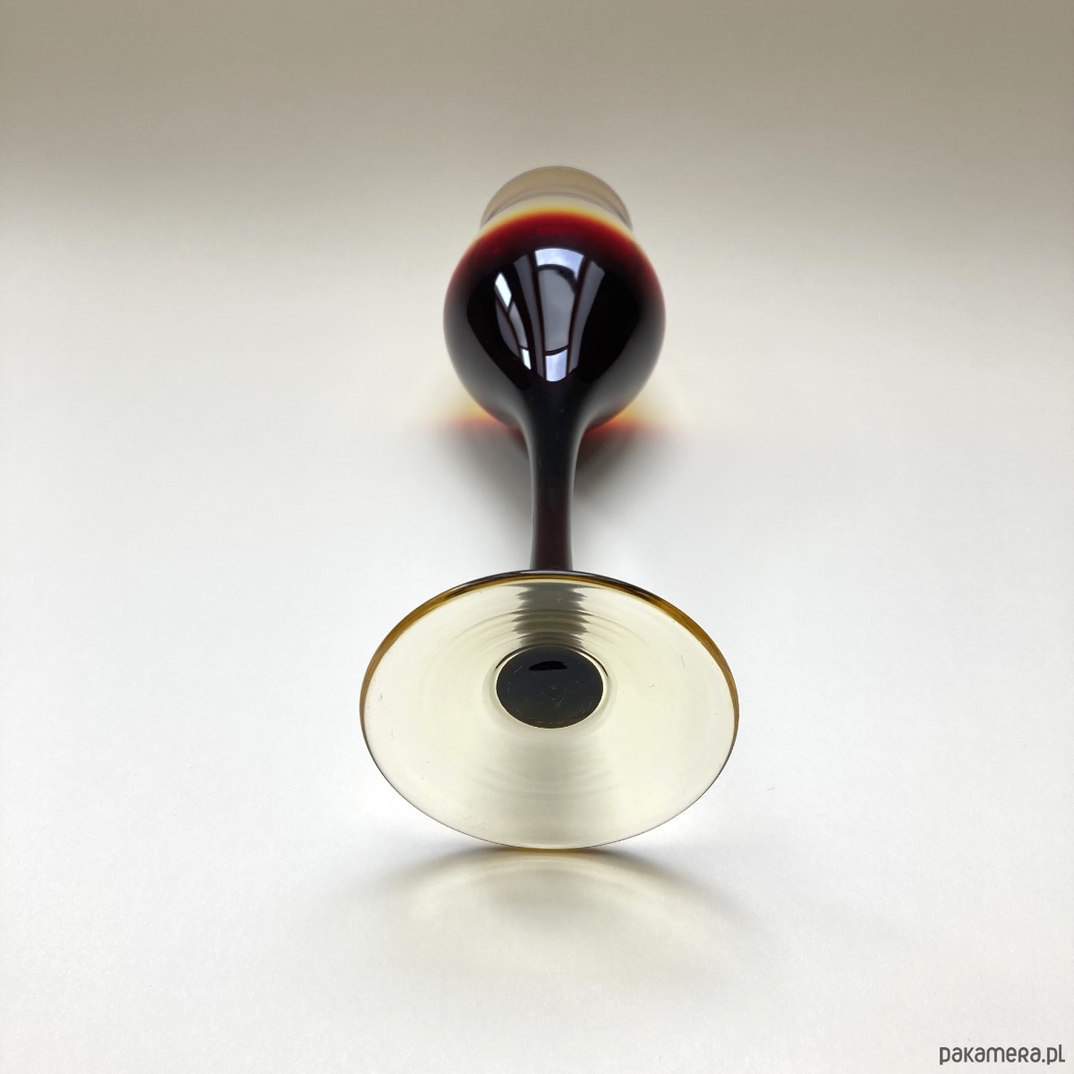 Wysokość kieliszka 23 cm; średnica podstawy 7 cm; wlot 5 cm.