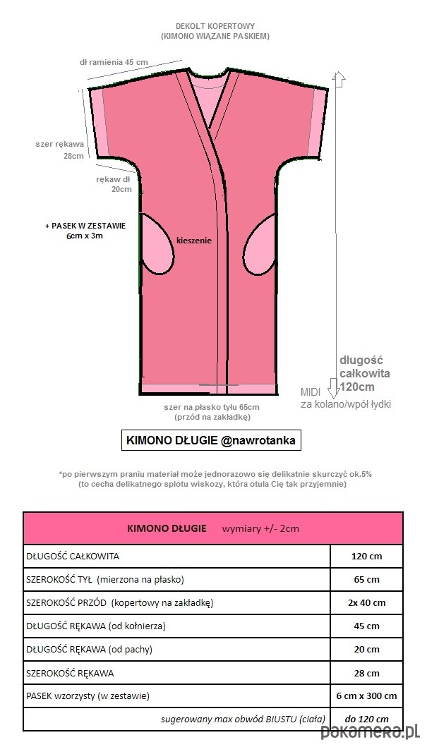 ZAPIĘCIE: wiązane kopertowe na szeroki pasek (nie zszyte jak szlafrok)