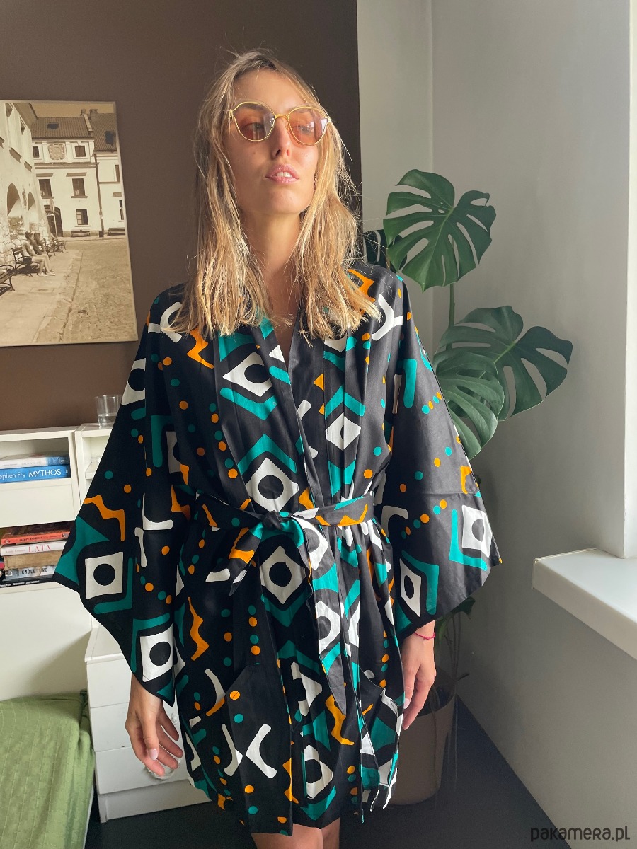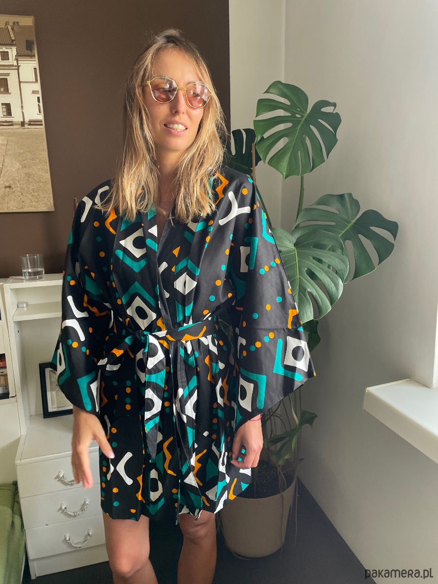 To delikatne, lekkie kimono z nowej kolekcji Senegal powstało, abyście czuli się wygodnie, a jednocześnie wyglądali niecodziennie. Bawełna, jako naturalna tkanina pozwala oddychać skórze i jest przyjazna dla środowiska. Soczyste kolory wzmacniają Waszą wewnętrzną siłę i wprawiają w doskonały nastrój. Klasyczny krój kimona i jego szerokie autorskie rękawy pasują zarówno mężczyzną, jak i kobietą. Dołączony pasek można zawiązać w talii, podkreślając w ten sposób sylwetkę lub zawiązać go na głowie, jako opaskę.