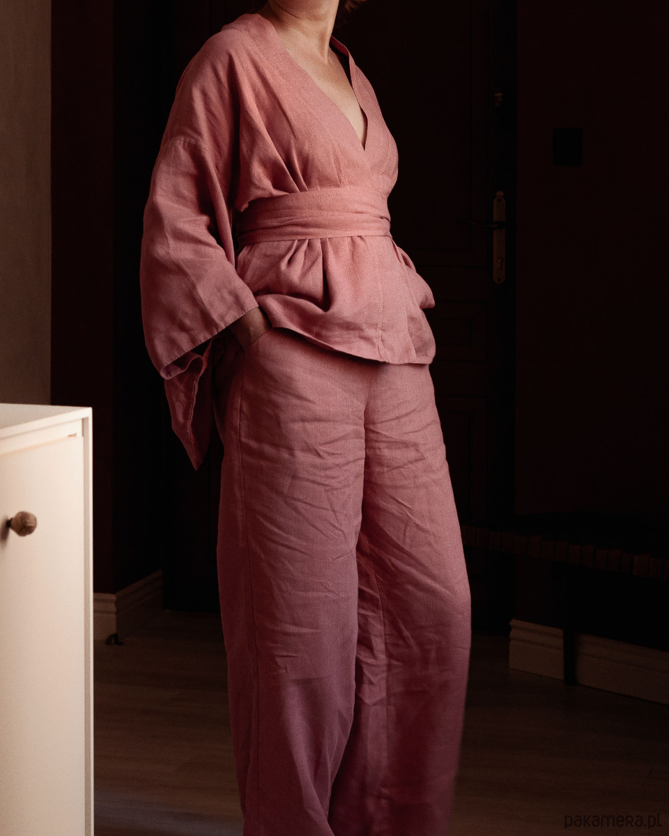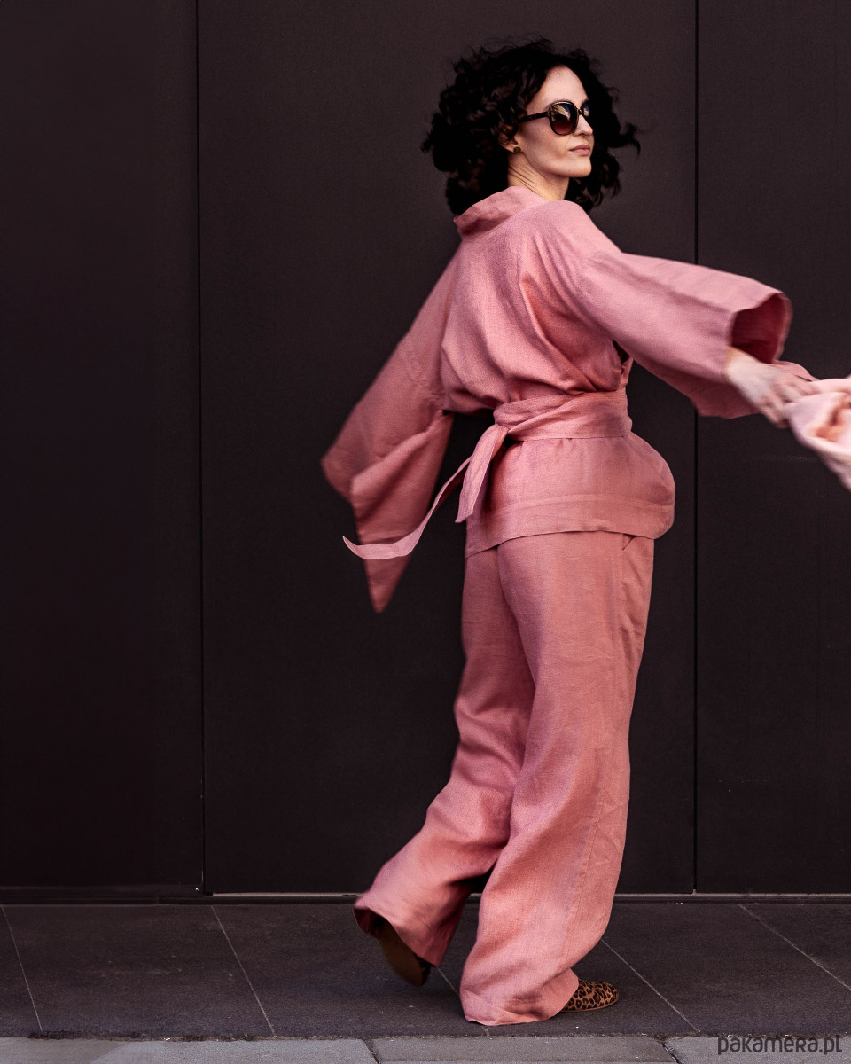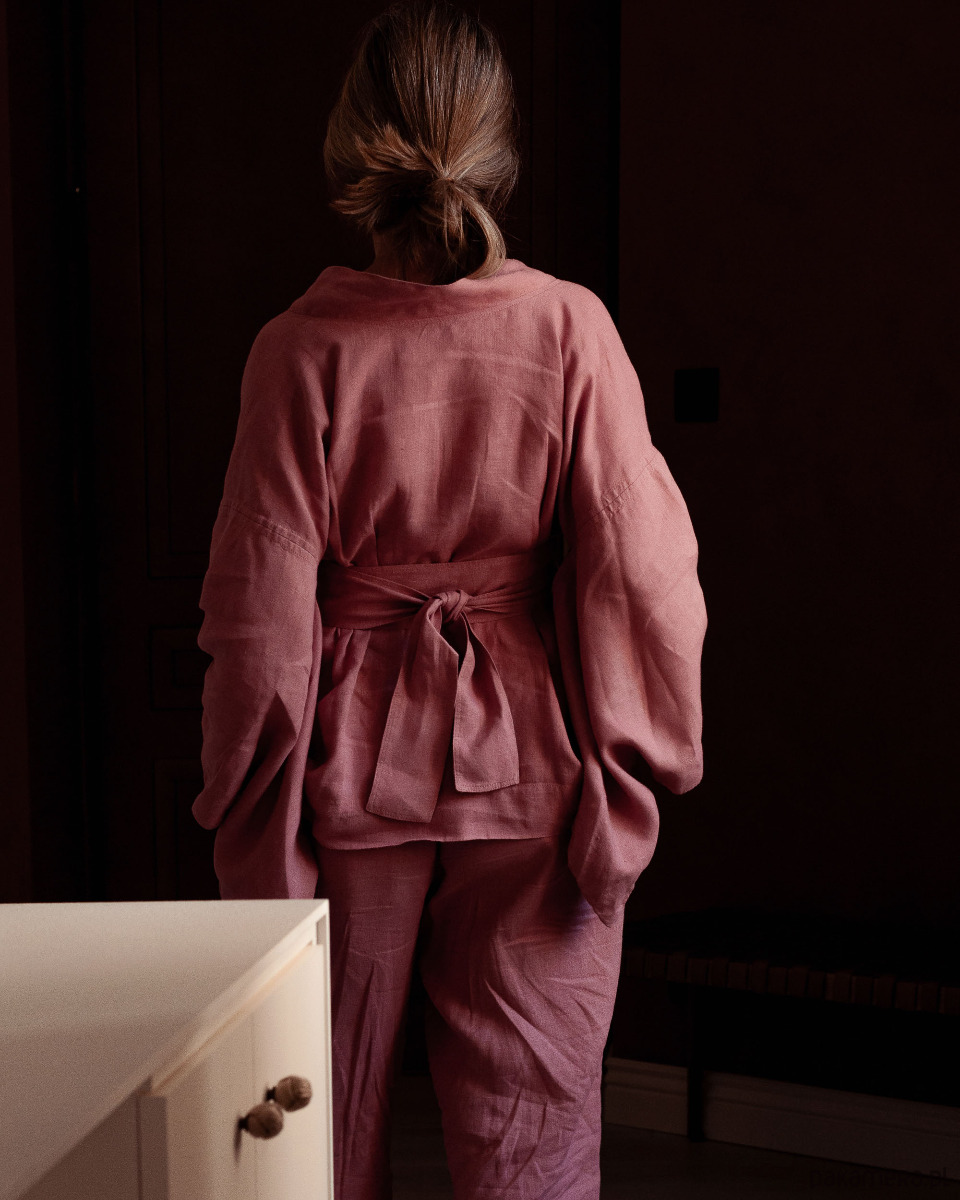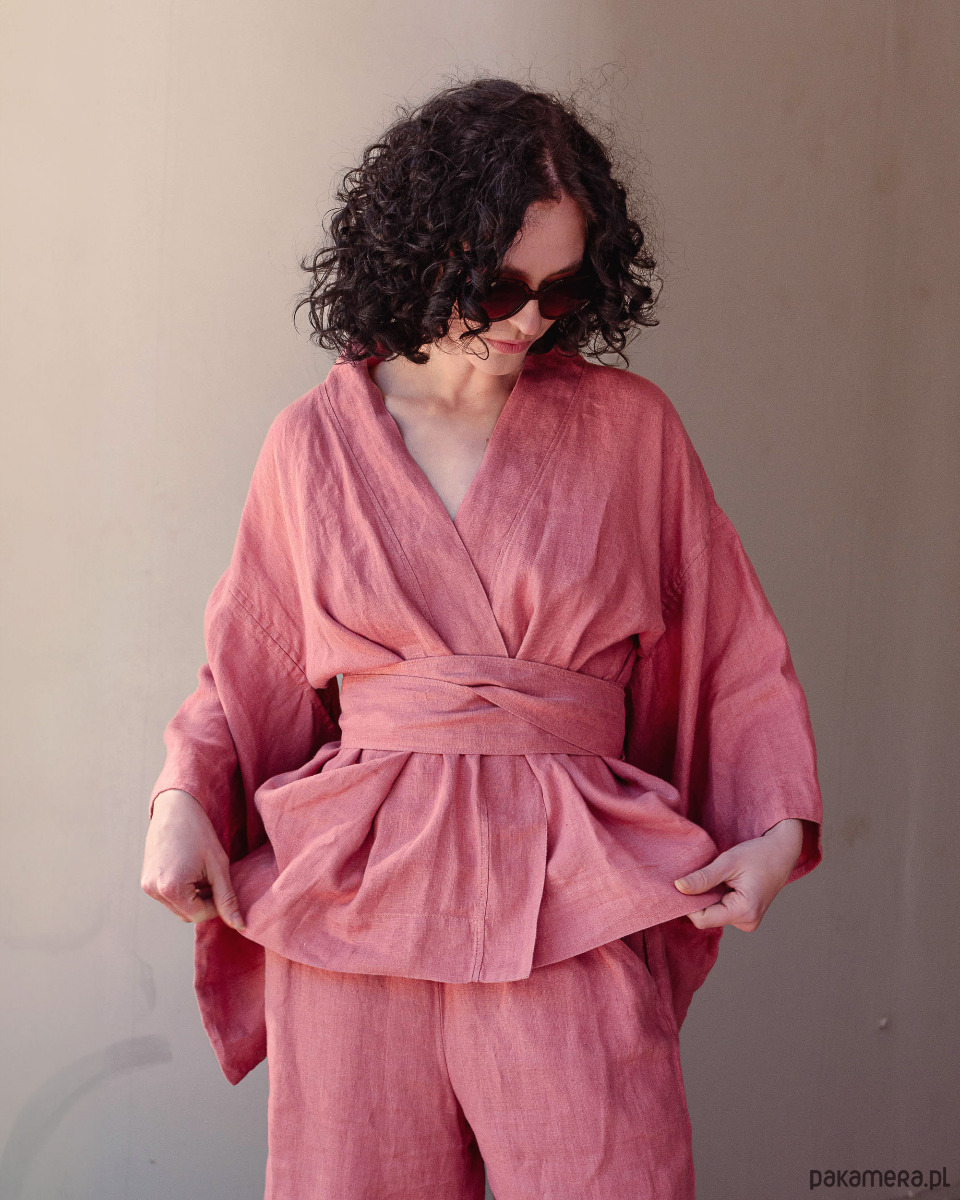 Kimono lniane różowe, lniana bluzka różowa.