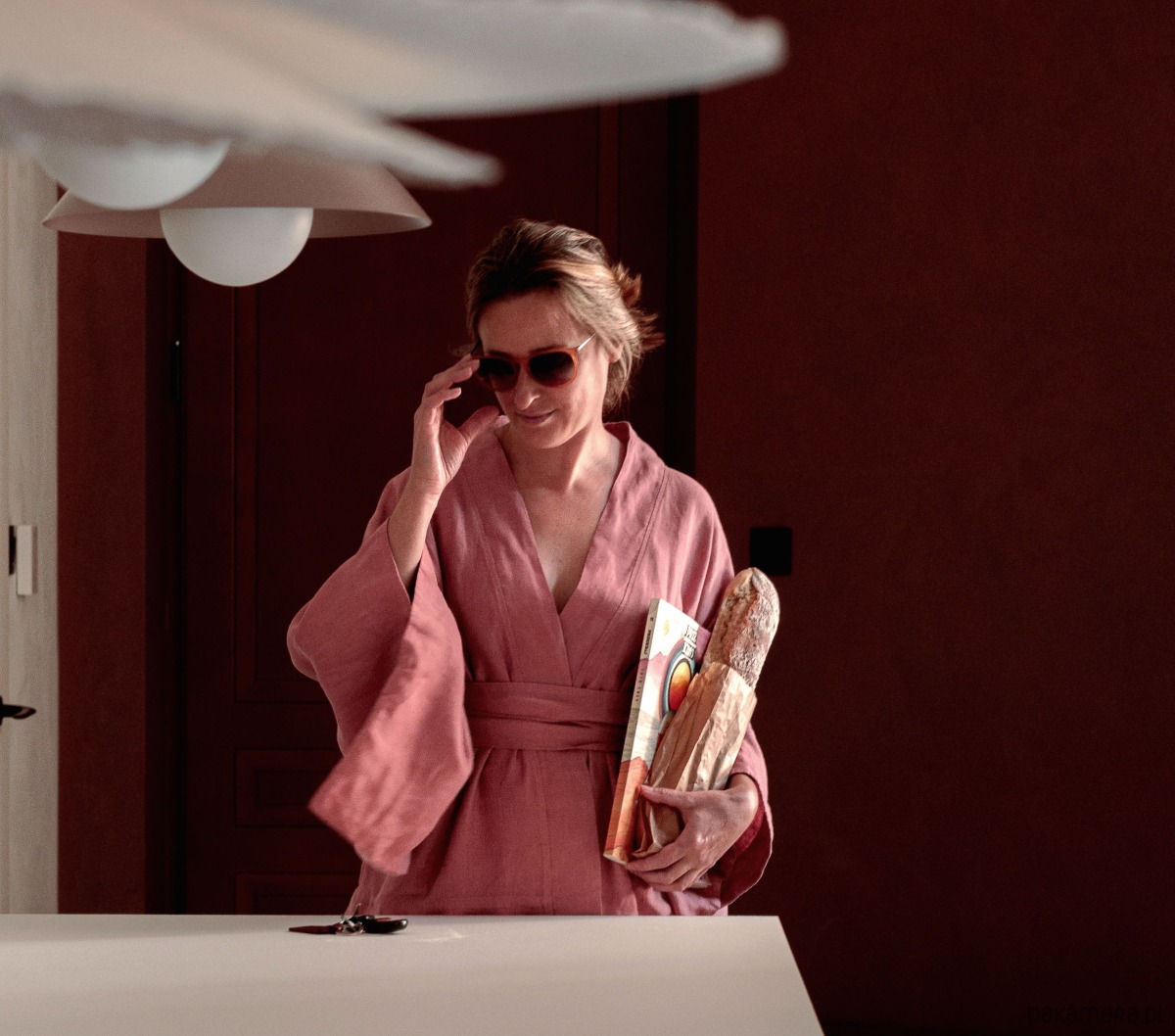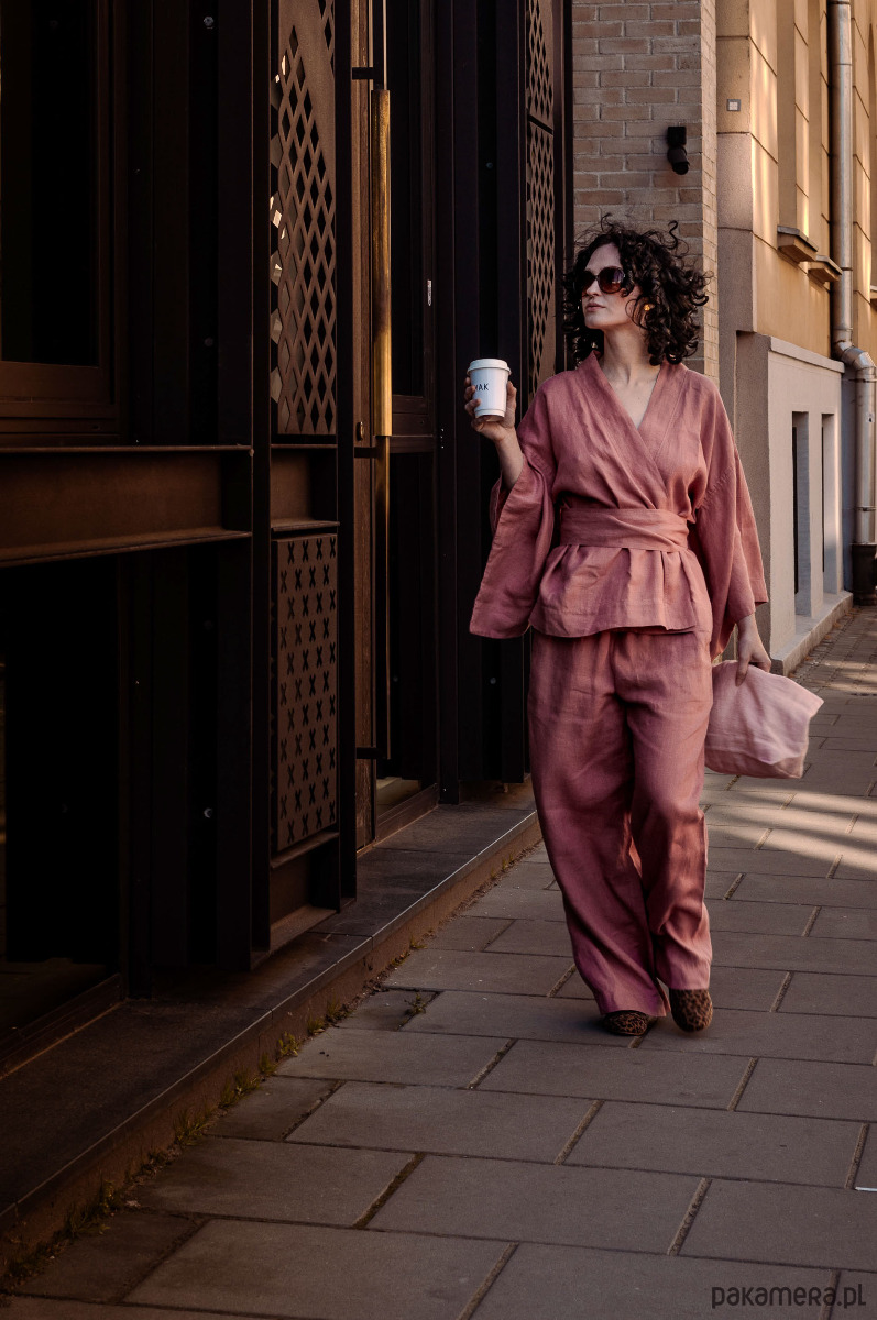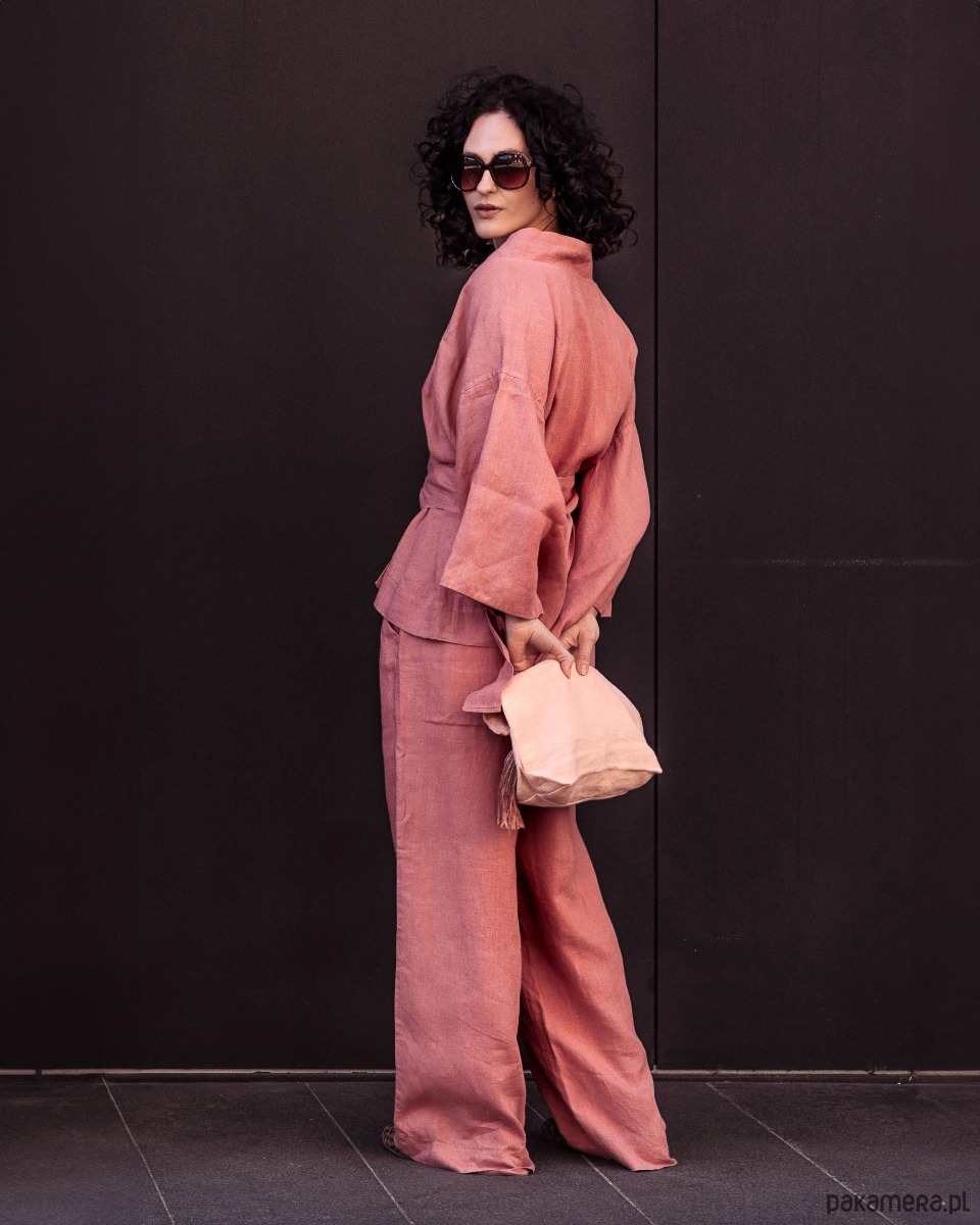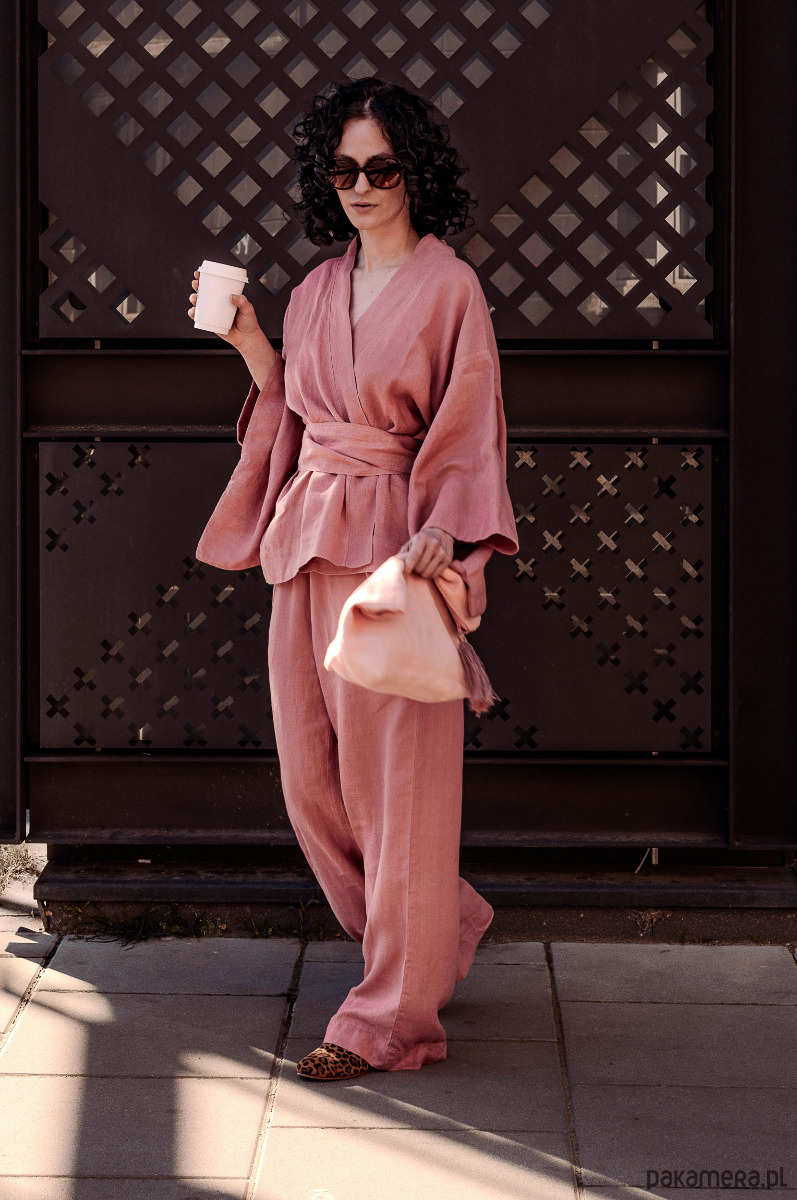 Kimono lniane różowe, lniana bluzka różowa.