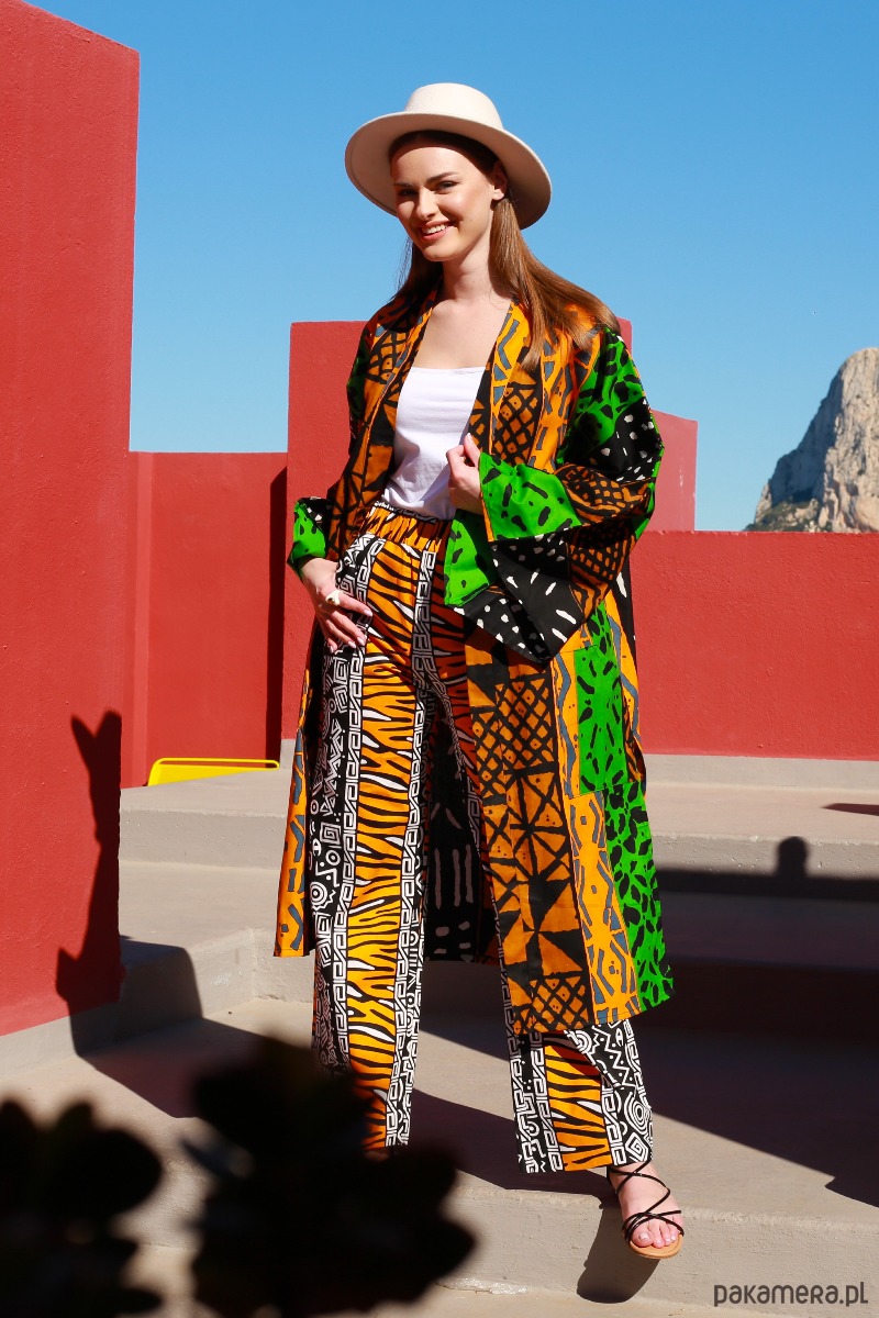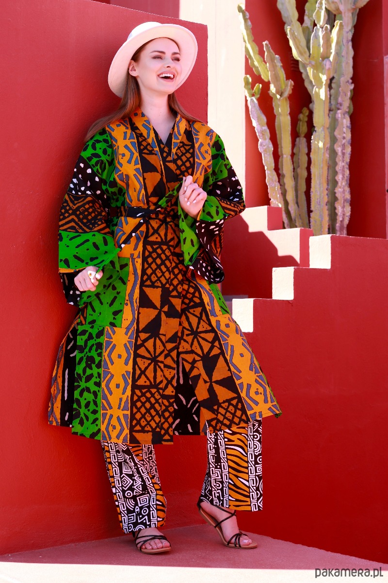 Makaba jest drugą odsłoną naszego kultowego kimona o tej samej nazwie. Wzór stworzony jest z podłużnych kolorowych pasów, dzięki czemu wysmukla i wydłuża sylwetkę. Odcienie inspirowane naturą w połączeniu z etnicznymi deseniami tworzą ciekawy i twarzowy zestaw. Kimono oprócz poczucia przyjemnego komfortu paradoksalnie dodaje nam elegancji i pazura. Idealnie prezentuje się w męskich i kobiecych stylizacjach.