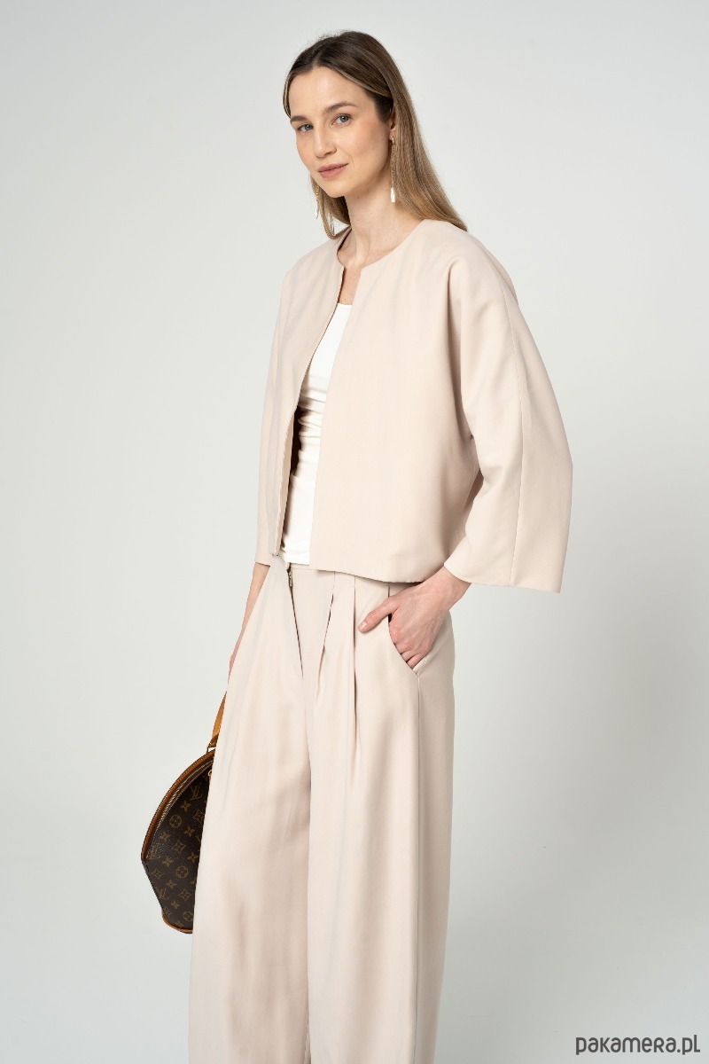 Kurtka o kimonowym kroju. W zestawie ma pasek. Kimono to prosta forma, która idealnie sprawdzi się do spodni i do sukienki. Możesz ją zestawić ze spodniami z tego samego materiały. Wykonana z dwóch warstw mięsistej wiskozy.