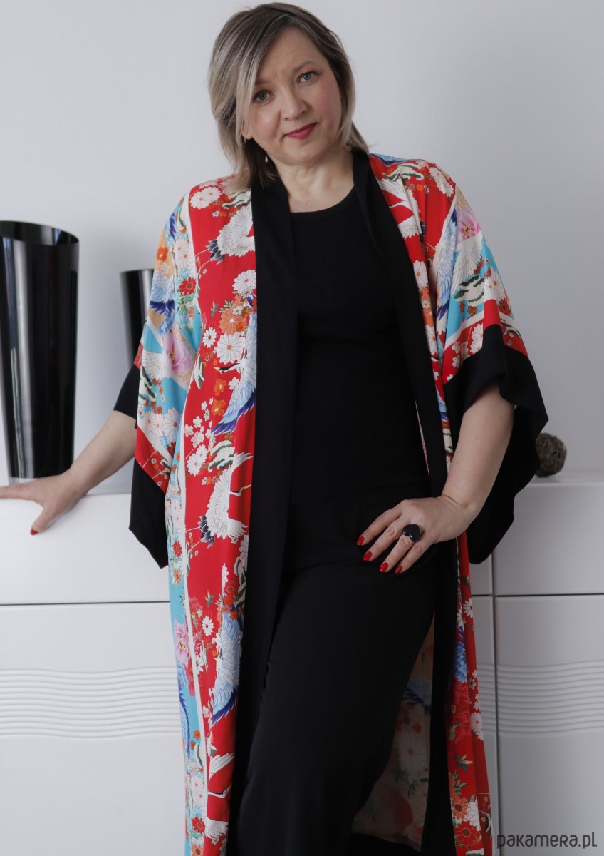 Odkryj kimono, które jest fascynującą opowieścią zapisaną na tkaninie. Red Zen to dynamiczna kompozycja barw i symboli, stworzona dla kobiet, które cenią nieszablonowe piękno i szukają w modzie głębszego wyrazu.