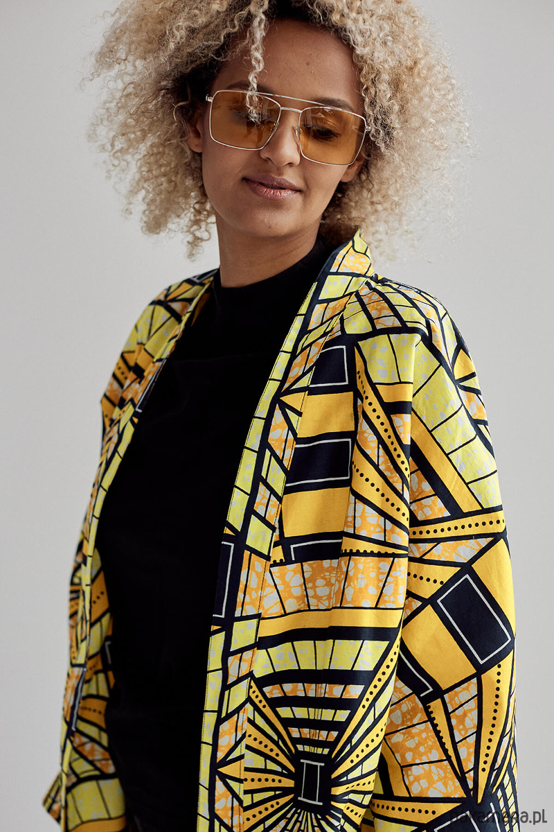 Wyjątkowej urody kimono Sunny Warrior zachwyca soczystością koloru, dwustronnym wzorem, wygodą i oryginalnością. Wykonane jest z dbałością o każdy szczegół z trwałej, bawełnianej tkaniny African Wax. Wzór na tkaninie powstał za pomocą tradycyjnej metody farbowania, inspirowanej batikiem.